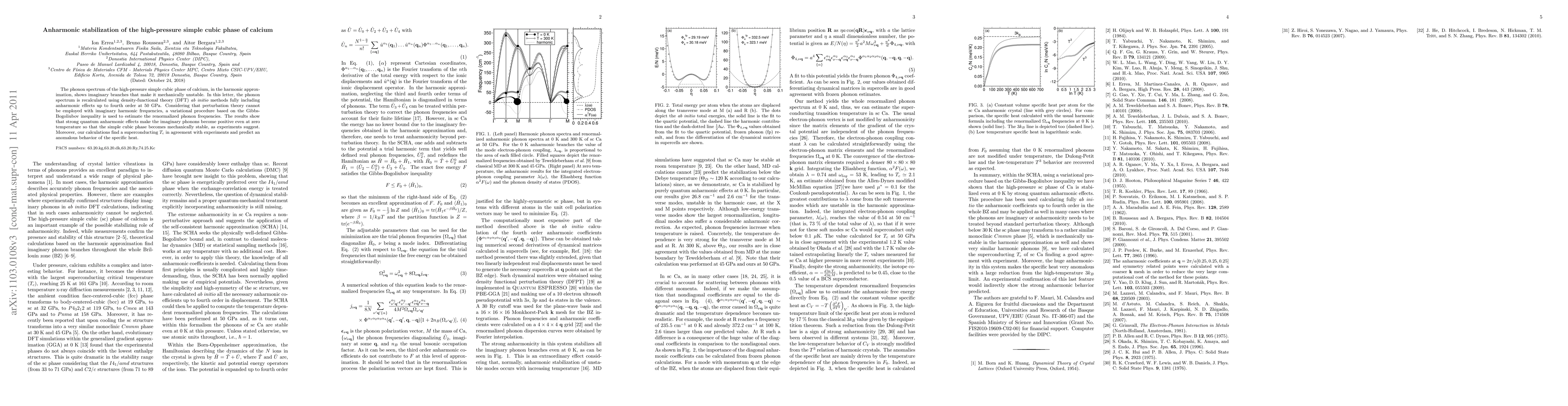 The phonon spectrum of the high-pressure simple cubic phase of calcium, in the harmonic approx- imation, shows imaginary branches that make it mechanically unstable. In this letter, the phonon spectrum is recalculated using density-functional theory (DFT) ab initio methods fully including anharmonic effects up to fourth order at 50 GPa. Considering that perturbation theory cannot be employed with imaginary harmonic frequencies, a variational procedure based on the Gibbs- Bogoliubov inequality is used to estimate the renormalized phonon frequencies. The results show that strong quantum anharmonic effects make the imaginary phonons become positive even at zero temperature so that the simple cubic phase becomes mechanically stable, as experiments suggest. Moreover, our calculations find a superconducting Tc in agreement with experiments and predict an anomalous behavior of the specific heat.