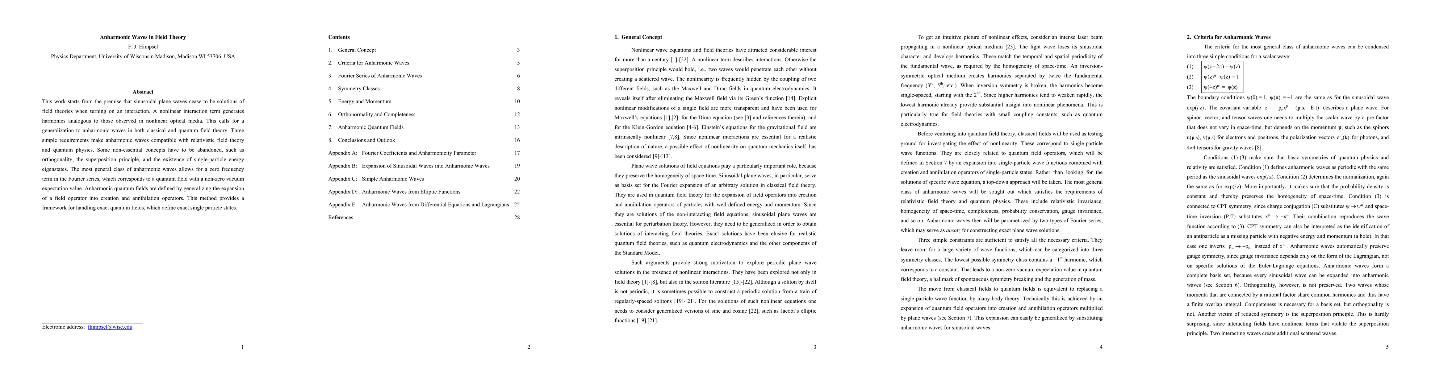 Researchers introduce anharmonic waves in classical and quantum field theory, showing that a new class of solutions can accommodate non-zero vacuum expectation values and exact single-particle states. This work provides a framework for handling exact quantum fields.