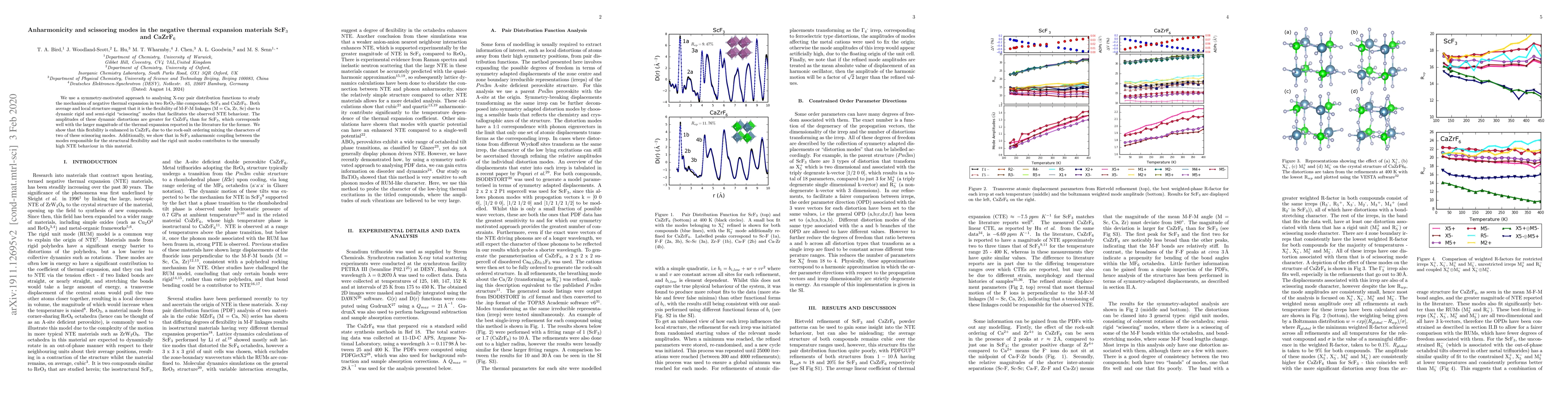 We use a symmetry-motivated approach to analysing X-ray pair distribution functions to study the mechanism of negative thermal expansion in two ReO$_3$-like compounds; ScF$_3$ and CaZrF$_6$. Both average and local structure suggest that it is the flexibility of M-F-M linkages (M = Ca, Zr, Sc) due to dynamic rigid and semi-rigid "scissoring" modes that facilitates the observed NTE behaviour. The amplitudes of these dynamic distortions are greater for CaZrF$_6$ than for ScF$_3$, which corresponds well with the larger magnitude of the thermal expansion reported in the literature for the former. We show that this flexbility is enhanced in CaZrF$_6$ due to the rock-salt ordering mixing the characters of two of these scissoring modes. Additionally, we show that in ScF$_3$ anharmonic coupling between the modes responsible for the structural flexibility and the rigid unit modes contributes to the unusually high NTE behaviour in this material.