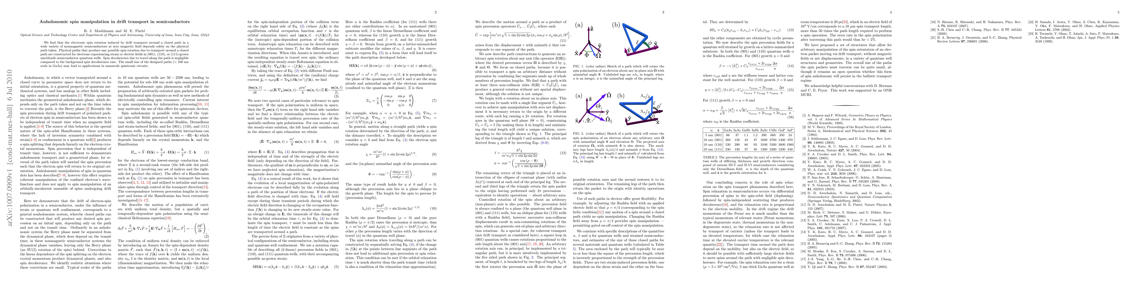 We find that the electronic spin rotation induced by drift transport around a closed path in a wide variety of nonmagnetic semiconductors at zero magnetic field depends solely on the physical path taken. Physical paths that produce any possible spin rotation due to transport around a closed path are constructed for electrons experiencing strain or electric fields in (001), (110), or (111)-grown zincblende semiconductor quantum wells. Spin decoherence due to travel along the path is negligible compared to the background spin decoherence rate. The small size of the designed paths (<100 nm scale in GaAs) may lead to applications in nanoscale spintronic circuits.