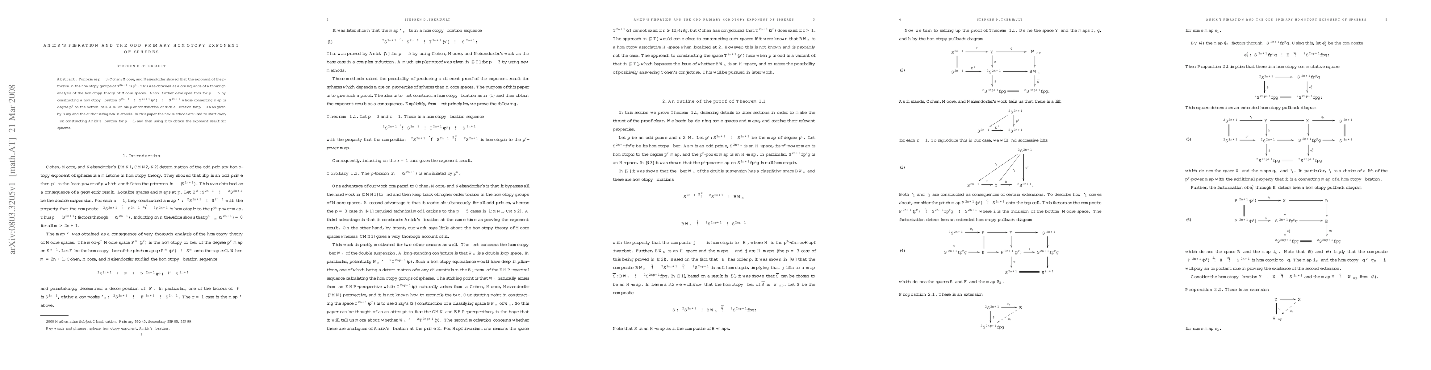 Researchers developed a new method to construct Anick's fibration for p>=3, which helps prove that the exponent of p-torsion in homotopy groups of S^2n+1 is p^n. The study provides insight into homotopy theory and has implications for understanding properties of spheres.