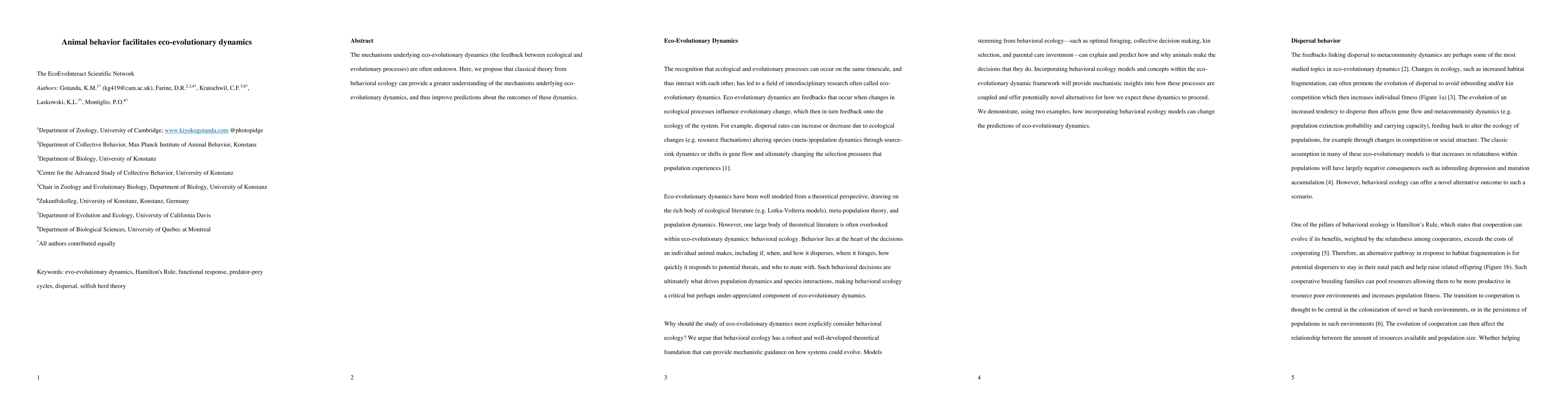 This paper suggests that insights from behavioral ecology can enhance our understanding of eco-evolutionary dynamics, which are the interactions between ecological and evolutionary processes, thereby improving predictions about their outcomes.