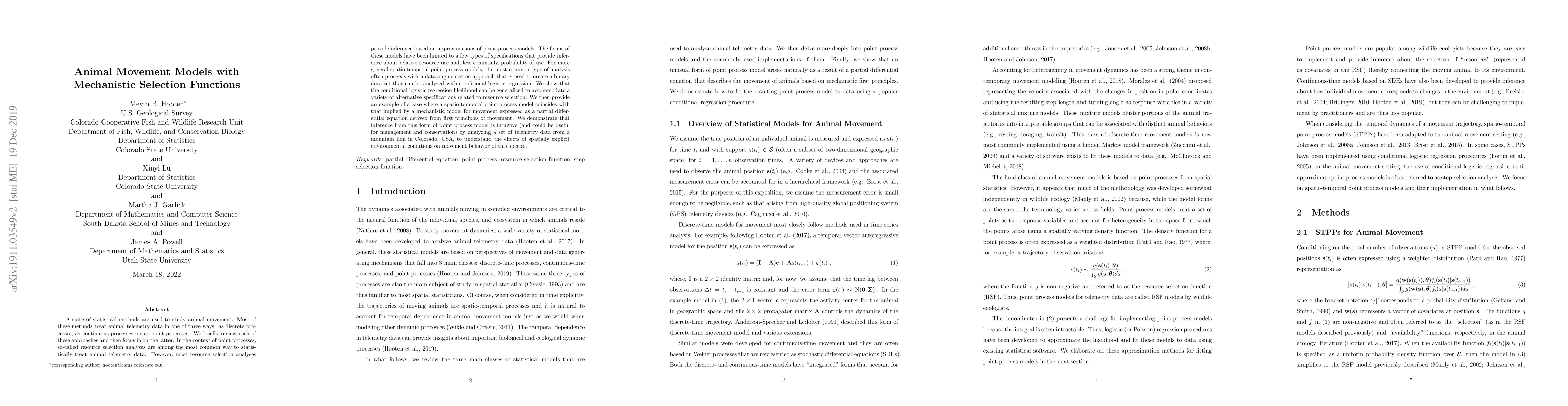 This paper develops generalized statistical methods for analyzing animal movement data using mechanistic selection functions within spatio-temporal point process models. It demonstrates the application of these methods through a case study on mountain lion movement in Colorado, showing how spatially explicit environmental conditions influence movement behavior.