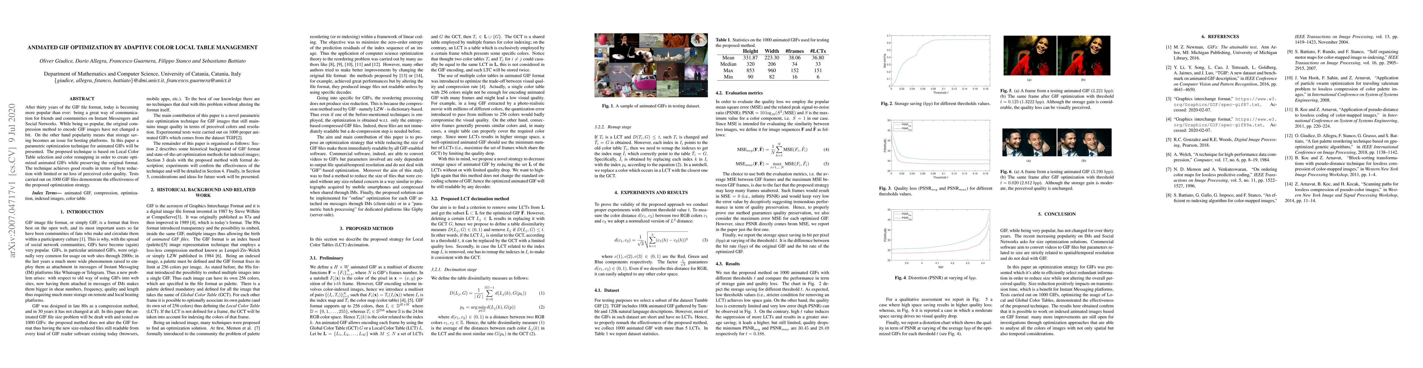 This paper proposes an adaptive optimization technique for animated GIFs based on local color table management and color remapping, achieving significant byte reduction while preserving color quality. Tests on 1000 GIF files show the effectiveness of the method in storage savings without compromising visual fidelity.