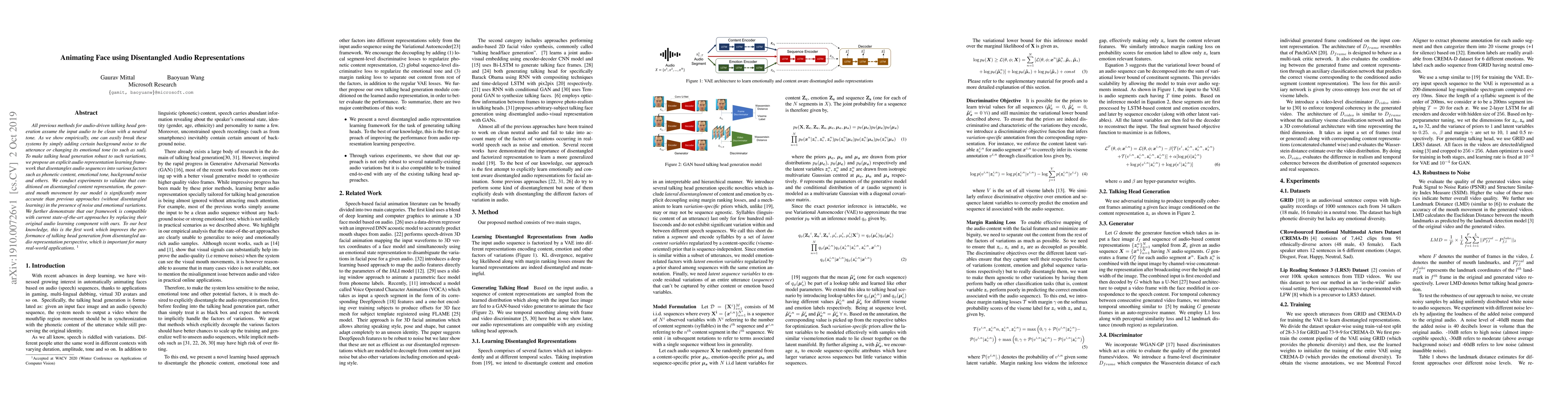 This research introduces a framework to disentangle audio sequences into factors like phonetic content, emotional tone, and background noise. Experiments show that using this disentangled representation significantly improves talking head generation accuracy under noise and emotional variations, outperforming previous methods and enhancing real-world applicability.