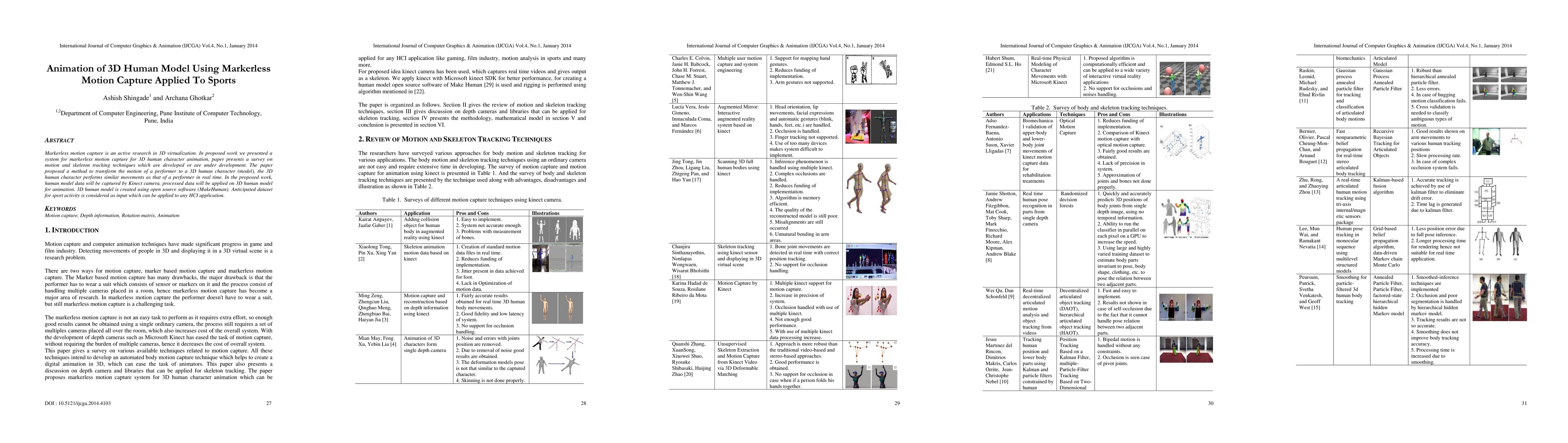 This paper proposes a system for markerless motion capture to animate 3D human models using Kinect data, transforming real-time performer movements into 3D character animations created with MakeHuman software. The method aims to apply the captured sports activity dataset to human-computer interaction applications.