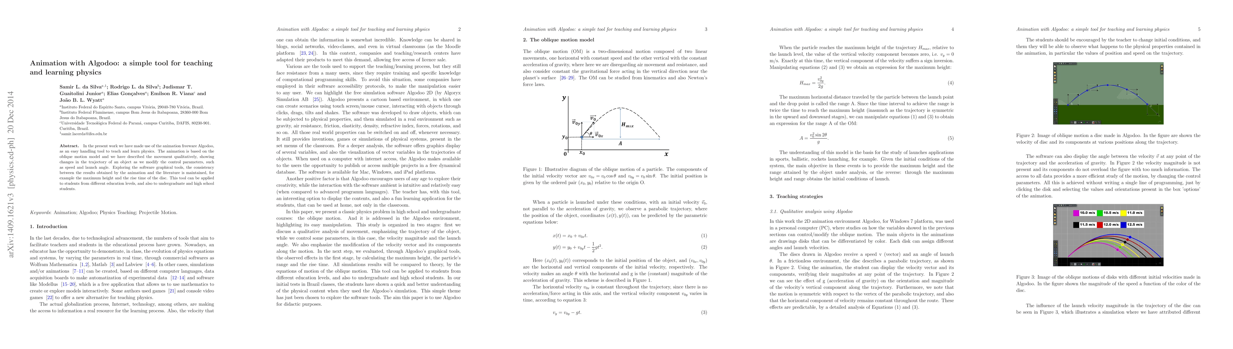 In the present work we have made use of the animation freeware Algodoo,as an easy handling tool to teach and learn physics. The animation is based on the oblique motion model and we have described the movement qualitatively, showing changes in the trajectory of an object as we modify the control parameters, such as speed and launch angle. Exploring the software graphical tools, the consistency between the results obtained by the animation and the literature is maintained, for example the maximum height and the rise time of the disc. This tool can be applied to students from different education levels, and also to undergraduate and high school students.