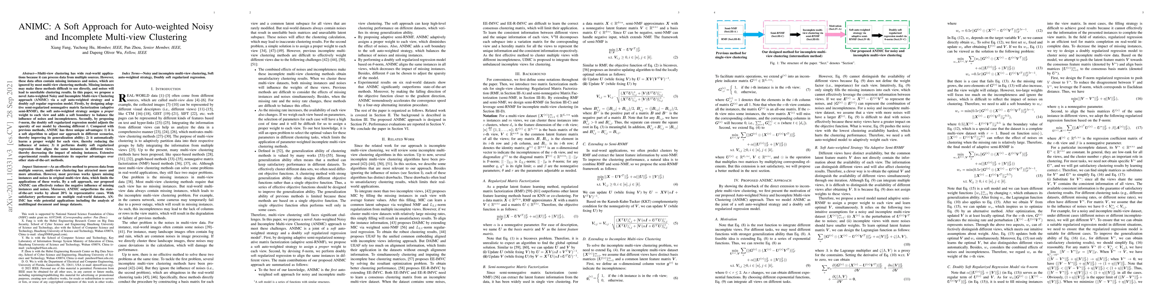 The ANIMC framework proposes a novel approach for multi-view clustering that addresses noisy and incomplete data through adaptive semi-RNMF and doubly soft regularized regression. It automatically weights each view and reduces noise and missing data impacts, demonstrating superior performance over existing methods.