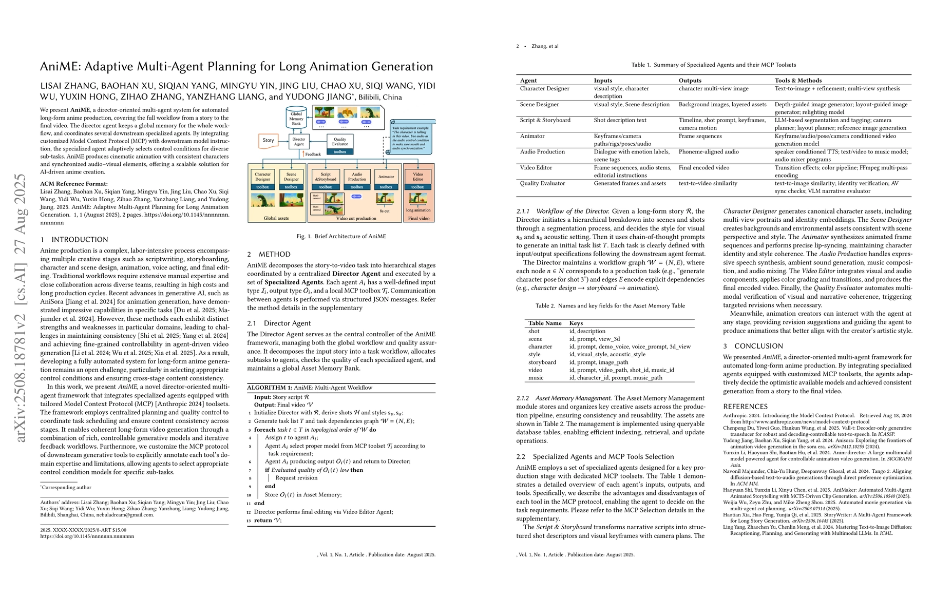 We present AniME, a director-oriented multi-agent system for automated long-form anime production, covering the full workflow from a story to the final video. The director agent keeps a global memory for the whole workflow, and coordinates several downstream specialized agents. By integrating customized Model Context Protocol (MCP) with downstream model instruction, the specialized agent adaptively selects control conditions for diverse sub-tasks. AniME produces cinematic animation with consistent characters and synchronized audio visual elements, offering a scalable solution for AI-driven anime creation.
