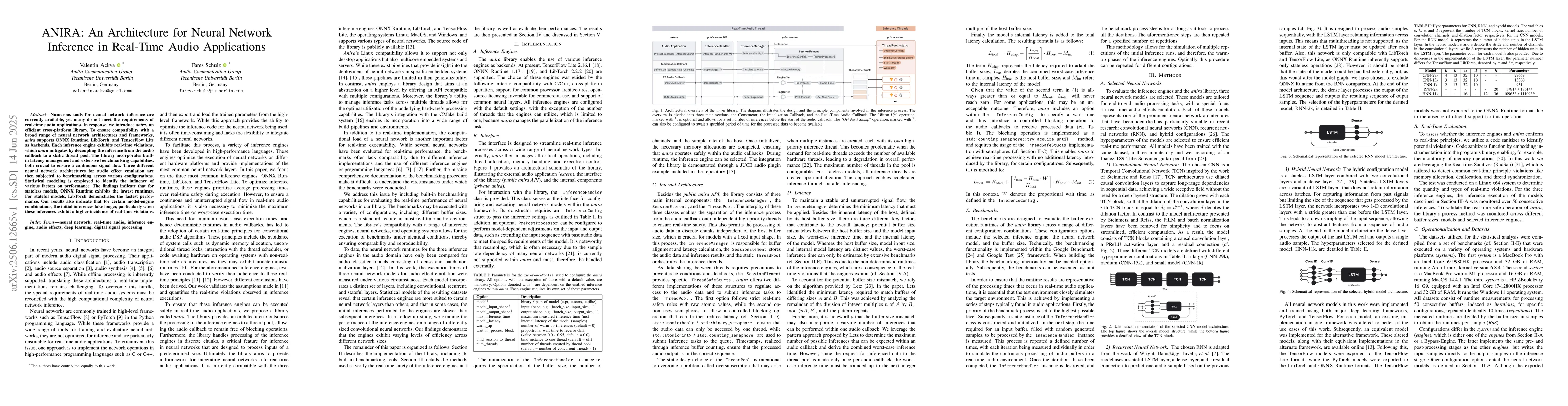 Numerous tools for neural network inference are currently available, yet many do not meet the requirements of real-time audio applications. In response, we introduce anira, an efficient cross-platform library. To ensure compatibility with a broad range of neural network architectures and frameworks, anira supports ONNX Runtime, LibTorch, and TensorFlow Lite as backends. Each inference engine exhibits real-time violations, which anira mitigates by decoupling the inference from the audio callback to a static thread pool. The library incorporates built-in latency management and extensive benchmarking capabilities, both crucial to ensure a continuous signal flow. Three different neural network architectures for audio effect emulation are then subjected to benchmarking across various configurations. Statistical modeling is employed to identify the influence of various factors on performance. The findings indicate that for stateless models, ONNX Runtime exhibits the lowest runtimes. For stateful models, LibTorch demonstrates the fastest performance. Our results also indicate that for certain model-engine combinations, the initial inferences take longer, particularly when these inferences exhibit a higher incidence of real-time violations.