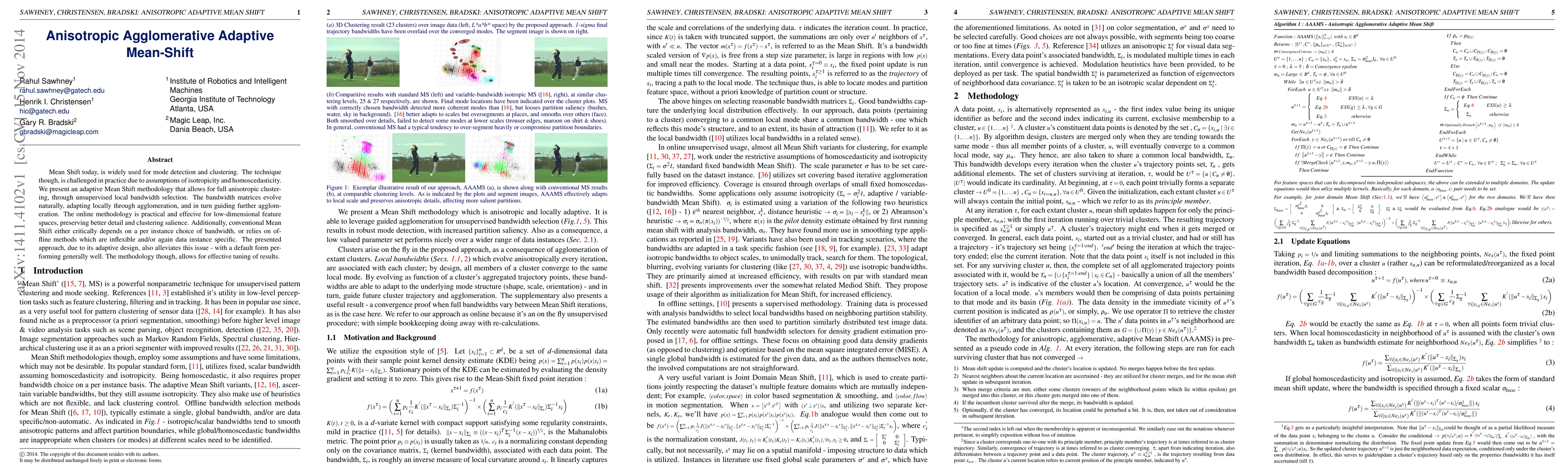 Mean Shift today, is widely used for mode detection and clustering. The technique though, is challenged in practice due to assumptions of isotropicity and homoscedasticity. We present an adaptive Mean Shift methodology that allows for full anisotropic clustering, through unsupervised local bandwidth selection. The bandwidth matrices evolve naturally, adapting locally through agglomeration, and in turn guiding further agglomeration. The online methodology is practical and effecive for low-dimensional feature spaces, preserving better detail and clustering salience. Additionally, conventional Mean Shift either critically depends on a per instance choice of bandwidth, or relies on offline methods which are inflexible and/or again data instance specific. The presented approach, due to its adaptive design, also alleviates this issue - with a default form performing generally well. The methodology though, allows for effective tuning of results.