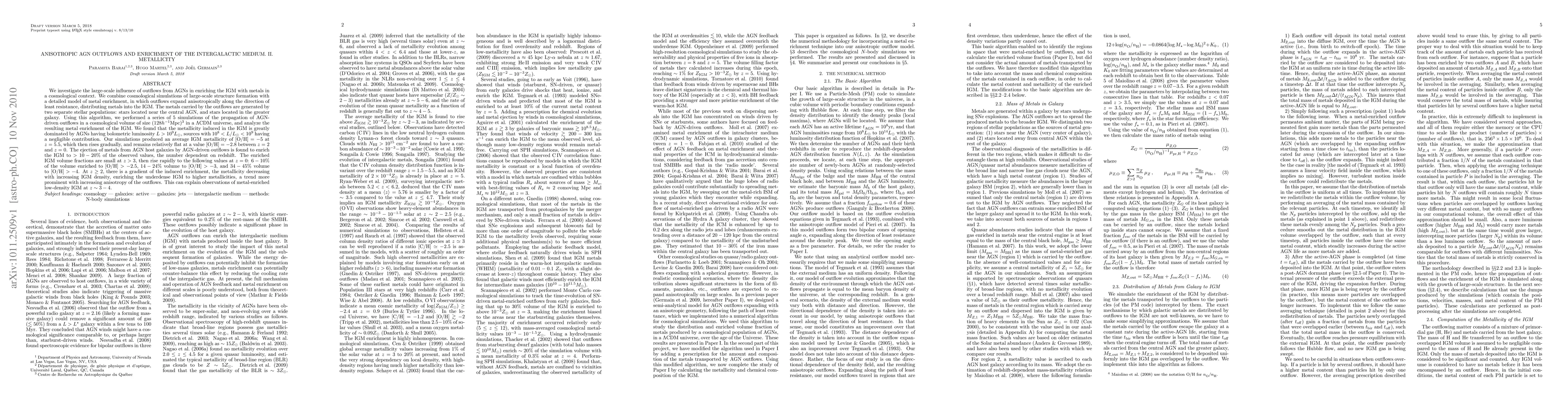 This paper examines the impact of anisotropic AGN outflows on the metal enrichment of the intergalactic medium (IGM) in a cosmological context. The study combines simulations of large-scale structure formation with detailed models of metal distribution, revealing that AGNs with high bolometric luminosity significantly enrich the IGM, while lower luminosity AGNs contribute negligibly.