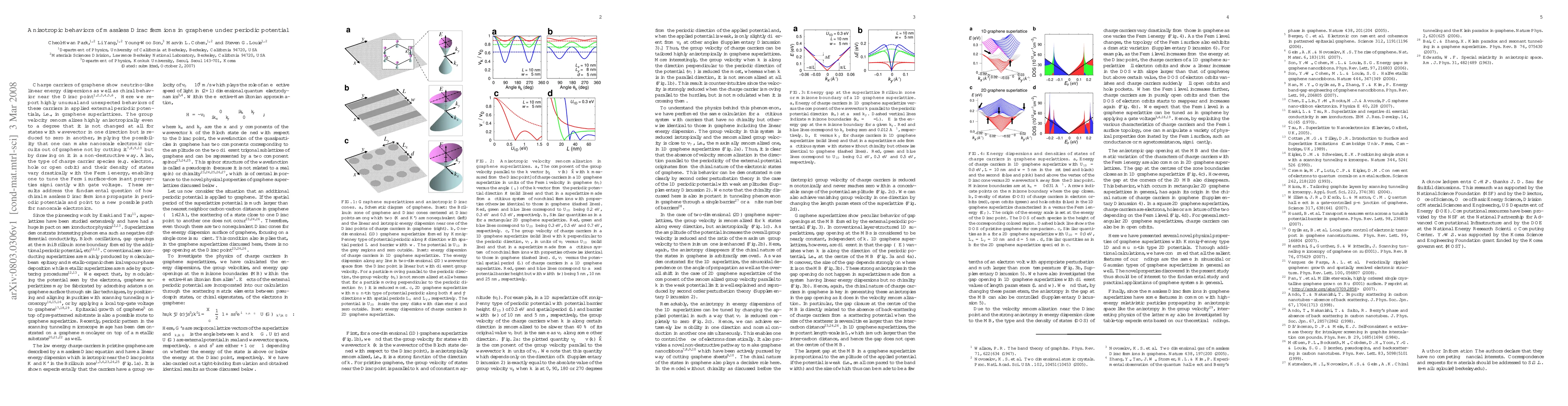 The study reveals anisotropic behaviors of massless Dirac fermions in graphene subjected to periodic potentials, showing drastic renormalization of group velocity and tunable Fermi surface properties via gate voltage, offering a non-destructive method for creating nanoscale electronic circuits.