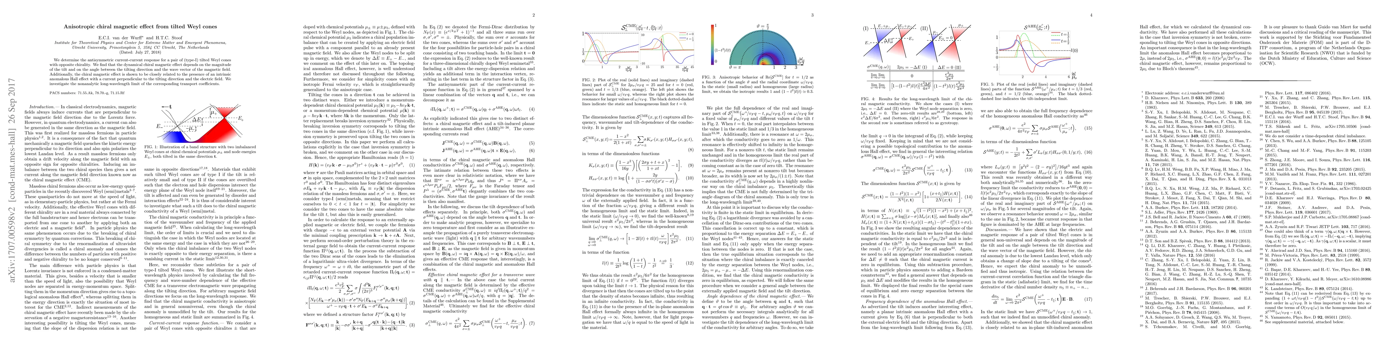 This paper investigates the anisotropic chiral magnetic effect in tilted Weyl cones, revealing that the effect's magnitude and directionality depend on the tilt magnitude and the angle between the tilt and magnetic field. The study also links this effect to the intrinsic anomalous Hall effect.