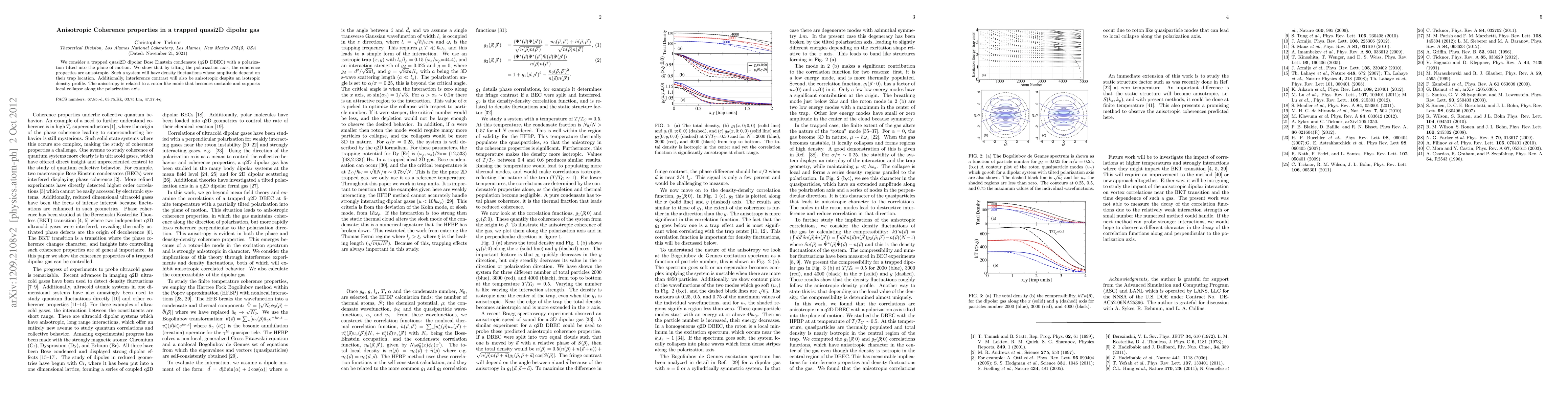 We consider a trapped quasi2D dipolar Bose Einstein condensate (q2D DBEC) with a polariza- tion tilted into the plane of motion. We show that by tilting the polarization axis, the coherence properties are anisotropic. Such a system will have density fluctuations whose amplitude strongly depend on their trap location relative to the polarization axis. Additionally, interference contrast will also be anisotropic despite an isotropic density profile. The anisotropy is related to a roton like mode that becomes unstable and supports local collapse along the polarization axis.