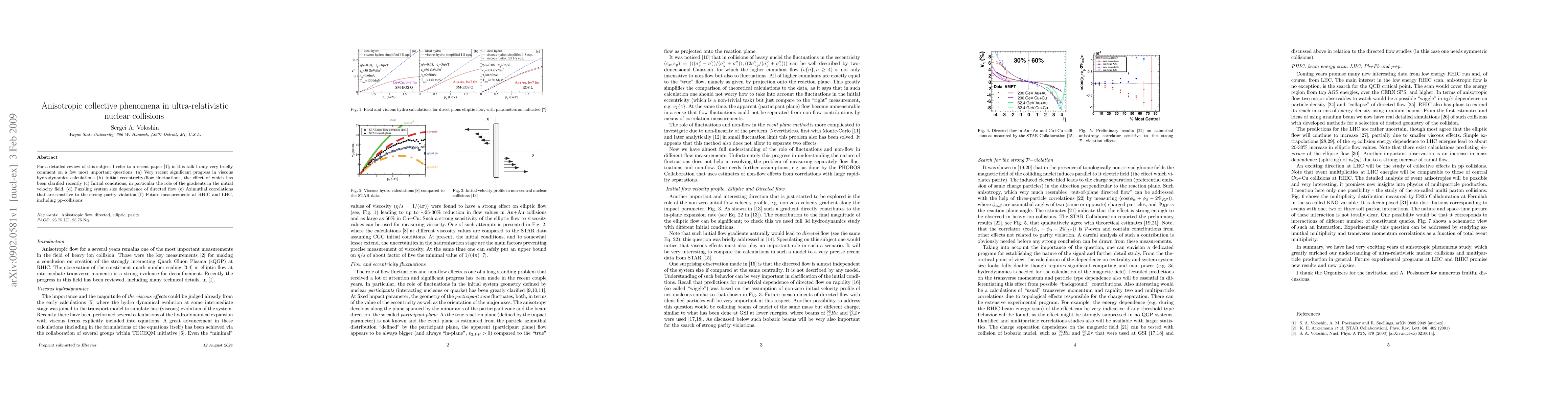 This paper discusses recent advancements in understanding anisotropic collective phenomena in ultra-relativistic nuclear collisions, focusing on viscous hydrodynamics, initial conditions, and the system size dependence of directed flow, alongside future experimental prospects at RHIC and LHC.