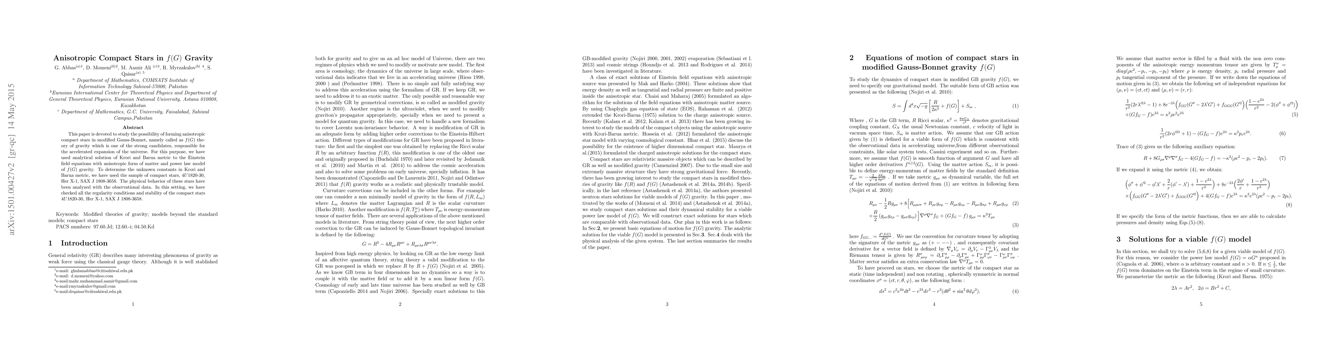 This research contributes to understanding compact stars in modified gravity theories, specifically $f(G)$ gravity, and their stability under anisotropic conditions, which could have implications for astrophysical observations and cosmological models.