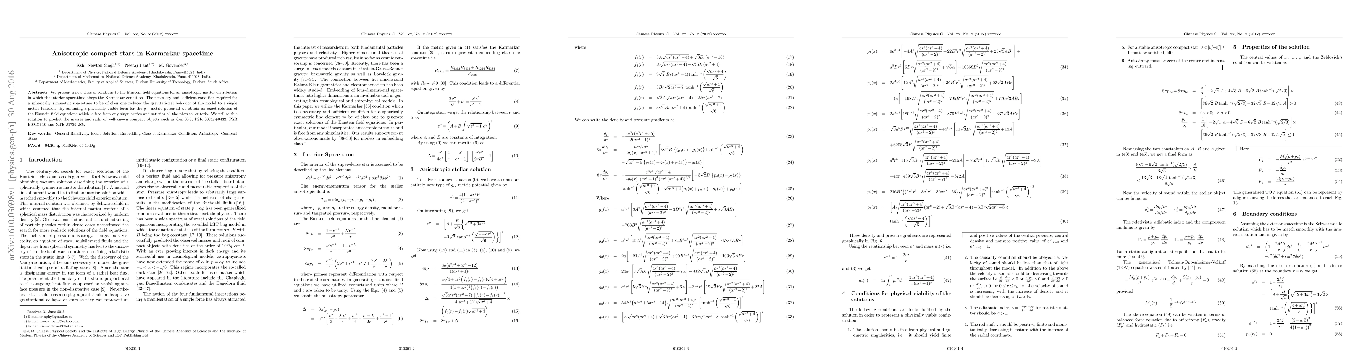 We present a new class of solutions to the Einstein field equations for an anisotropic matter distribution in which the interior space-time obeys the Karmarkar condition. The necessary and sufficient condition required for a spherically symmetric space-time to be of class one reduces the gravitational behavior of the model to a single metric function. By assuming a physically viable form for the $g_{rr}$ metric potential we obtain an exact solution of the Einstein field equations which is free from any singularities and satisfies all the physical criteria. We utilize this solution to predict the masses and radii of well-known compact objects such as Cen X-3, PSR J0348+0432, PSRB0943+10 and XTE J1739-285. To be publish in Chinese Physics C (Accepted)