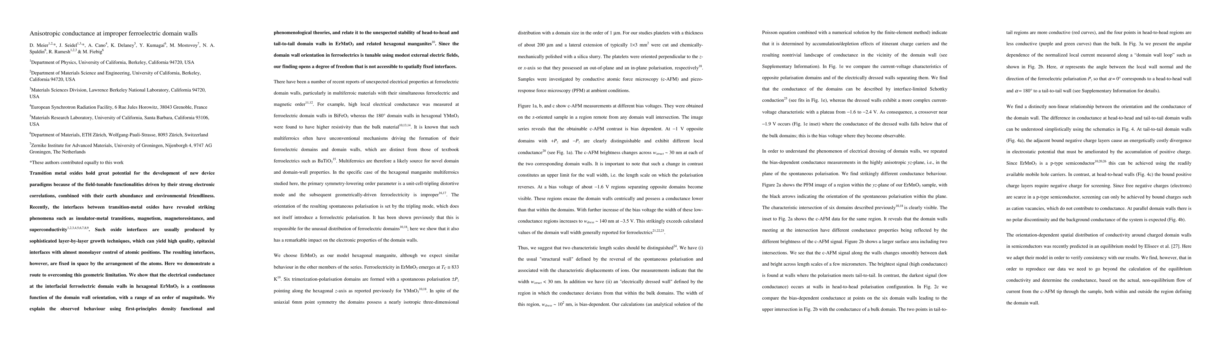 This research demonstrates anisotropic electrical conductance at ferroelectric domain walls in hexagonal ErMnO3, showing a tunable conductance range of an order of magnitude based on domain wall orientation. The findings provide a new degree of freedom in material functionality, potentially enabling advanced device paradigms.