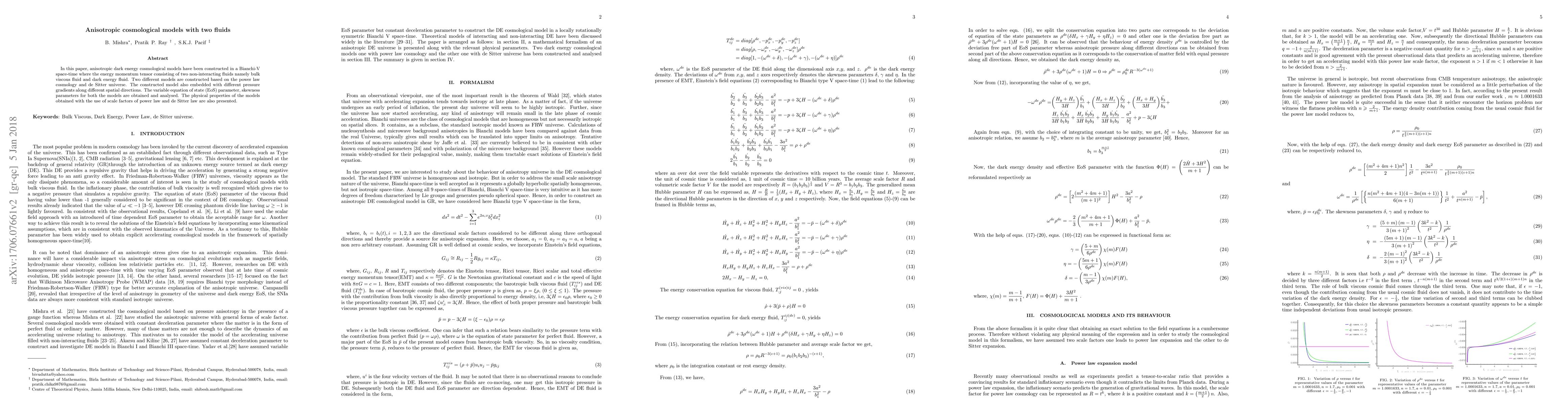 Researchers constructed anisotropic cosmological models with two fluids, a bulk viscous fluid and dark energy fluid, to analyze their physical properties and equation of state parameters in different space-time geometries.