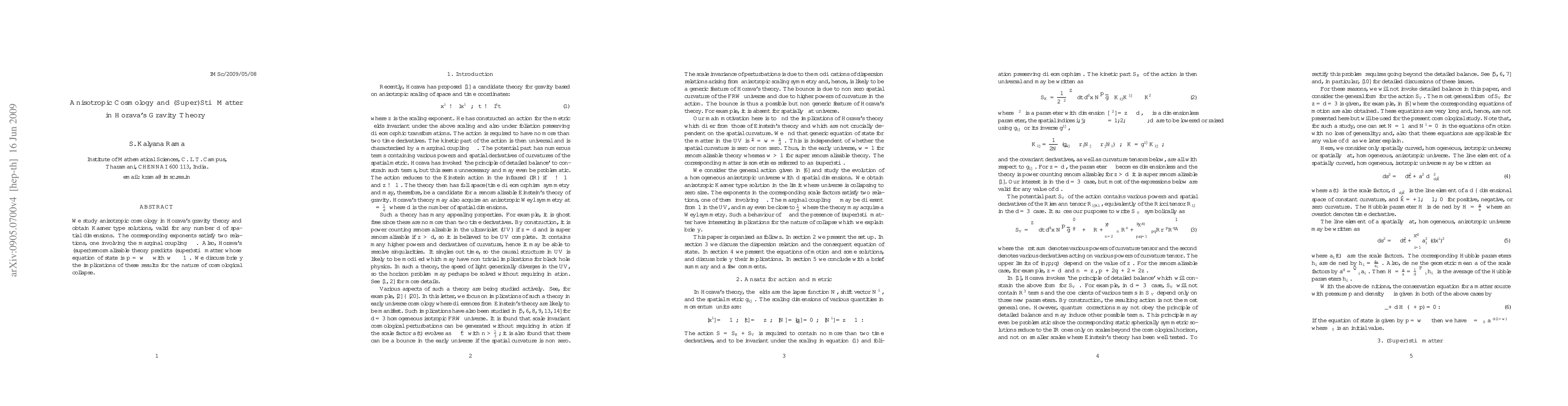 We study anisotropic cosmology in Ho\v{r}ava's gravity theory and obtain Kasner type solutions, valid for any number d of spatial dimensions. The corresponding exponents satisfy two relations, one involving the marginal coupling \lambda. Also, Ho\v{r}ava's (super)renormalisable theory predicts (super)stiff matter whose equation of state is p = w \rho with w \ge 1. We discuss briefly the implications of these results for the nature of cosmological collapse.