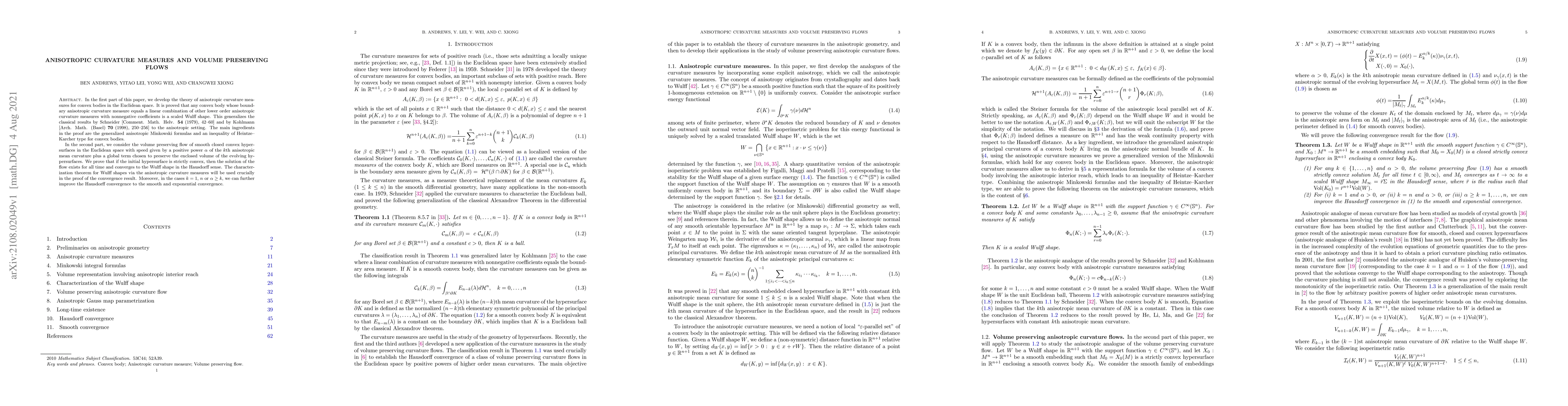 This research paper develops a new theory for anisotropic curvature measures in convex bodies, linking them to Wulff shapes, and proves the existence and convergence of volume-preserving flows of smooth closed convex hypersurfaces.
