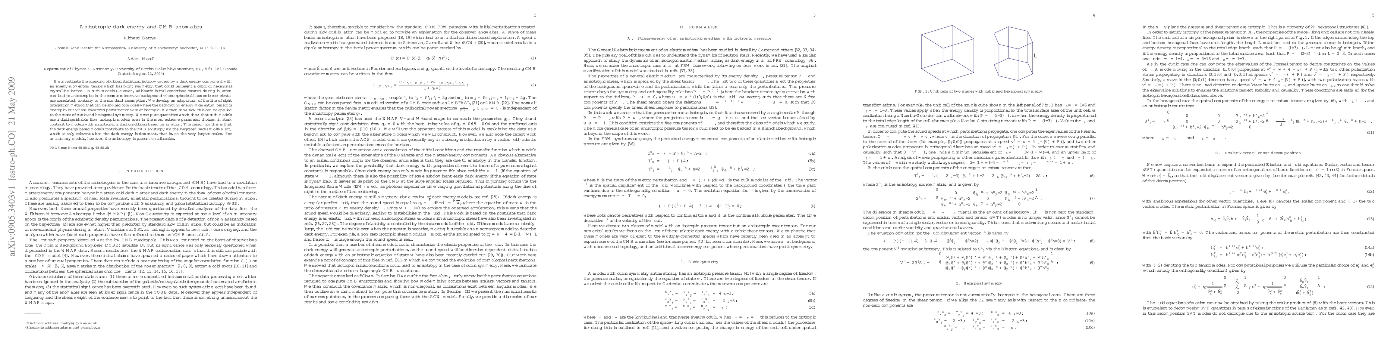 We investigate the breaking of global statistical isotropy caused by a dark energy component with an energy-momentum tensor which has point symmetry, that could represent a cubic or hexagonal crystalline lattice. In such models Gaussian, adiabatic initial conditions created during inflation can lead to anisotropies in the cosmic microwave background whose spherical harmonic coefficients are correlated, contrary to the standard assumption. We develop an adaptation of the line of sight integration method that can be applied to models where the background energy-momentum tensor is isotropic, but whose linearized perturbations are anisotropic. We then show how this can be applied to the cases of cubic and hexagonal symmetry. We compute quantities which show that such models are indistinguishable from isotropic models even in the most extreme parameter choices, in stark contrast to models with anisotropic initial conditions based on inflation. The reason for this is that the dark energy based models contribute to the CMB anistropy via the inegrated Sachs-Wolfe effect, which is only relevent when the dark energy is dominant, that is, on the very largest scales. For inflationary models, however, the anisotropy is present on all scales.