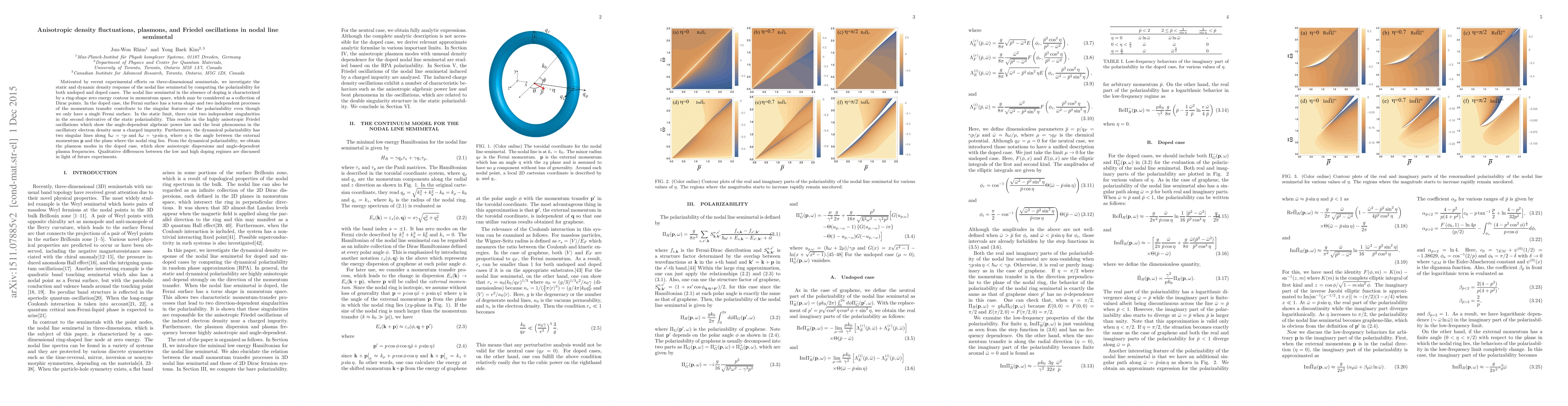 Researchers studied the response of a nodal line semimetal to doping, finding anisotropic oscillations in electron density and angle-dependent plasma frequencies, with implications for future experiments on three-dimensional semimetals.