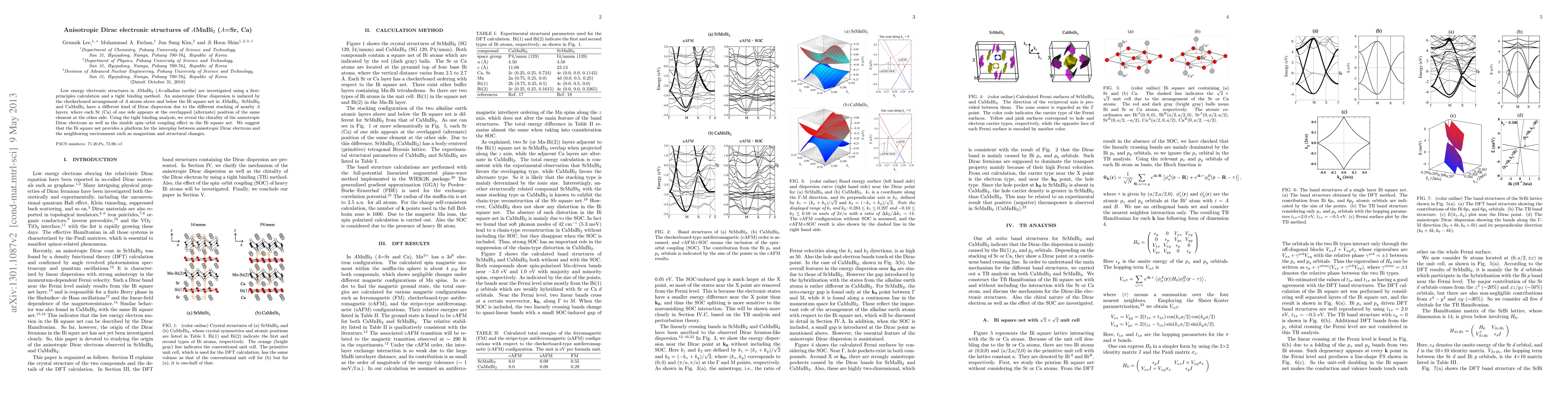 The research employs first-principles calculations and a tight-binding method to investigate the low-energy electronic structures of AMnBi2 (A=Sr, Ca).