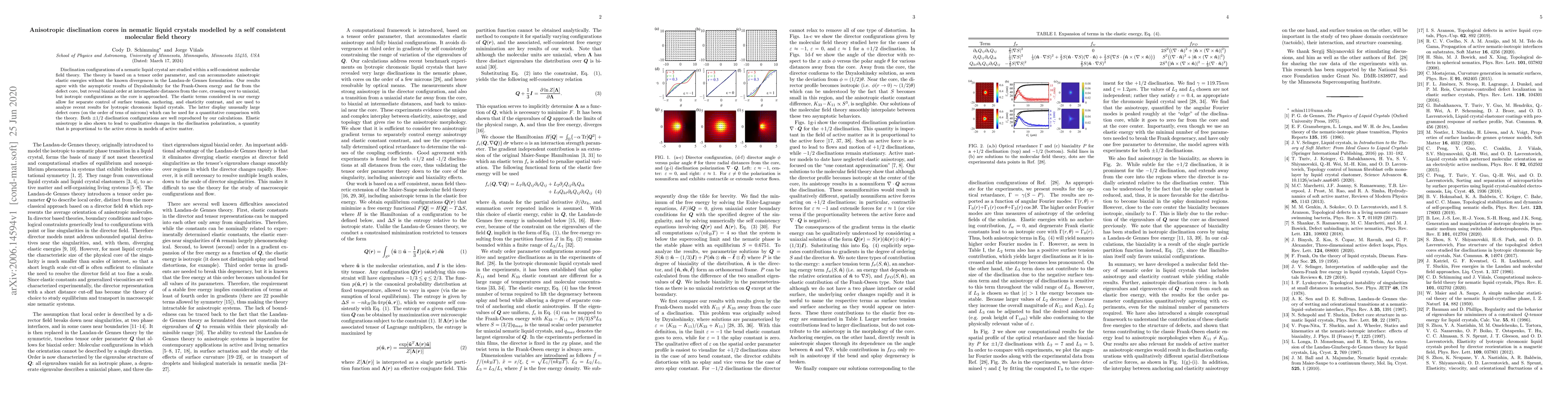 Researchers used a self-consistent molecular field theory to study disclination cores in nematic liquid crystals, finding anisotropic elastic energies that lead to biaxial order at intermediate distances from the core, before crossing over to isotropic configurations.