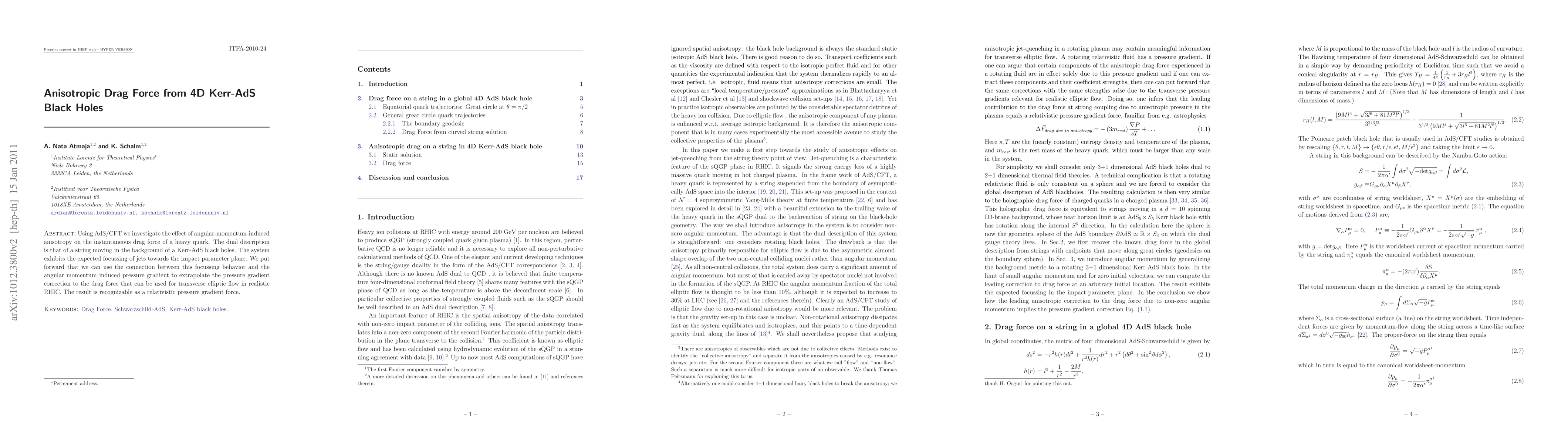 This research investigates the anisotropic drag force experienced by a heavy quark in the background of a 4D Kerr-AdS black hole using AdS/CFT correspondence. It finds that the angular momentum-induced anisotropy leads to a relativistic pressure gradient force, potentially applicable to transverse elliptic flow in high-energy heavy-ion collisions at RHIC.