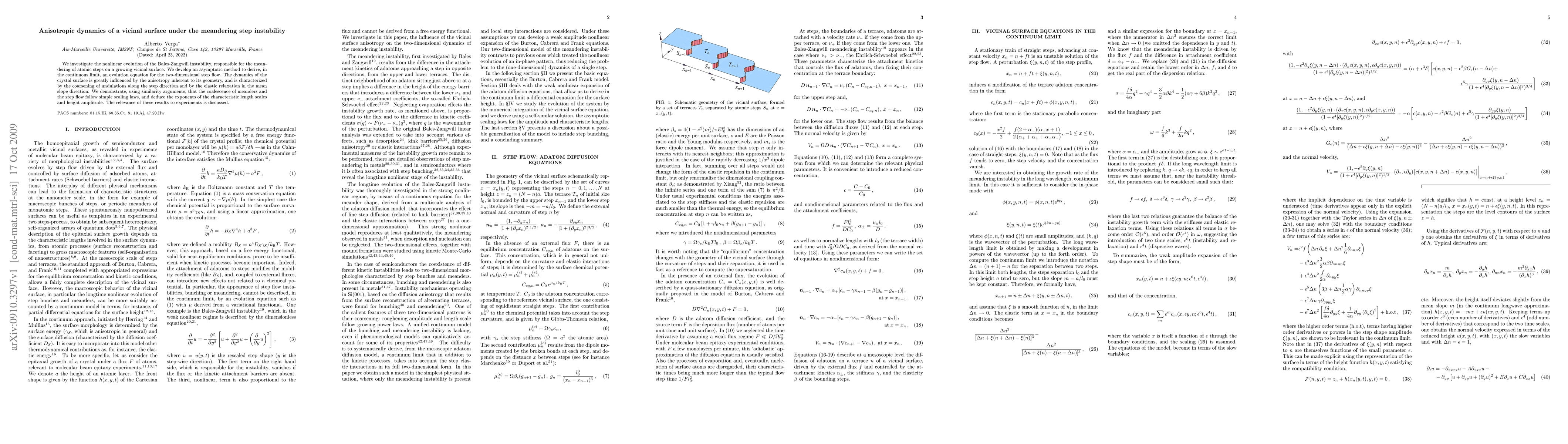 This paper studies the nonlinear dynamics of the Bales-Zangwill instability causing atomic step meandering on a growing vicinal surface. It develops an asymptotic method to derive an evolution equation for the step flow, highlighting anisotropic effects and the coarsening of undulations along the step direction.