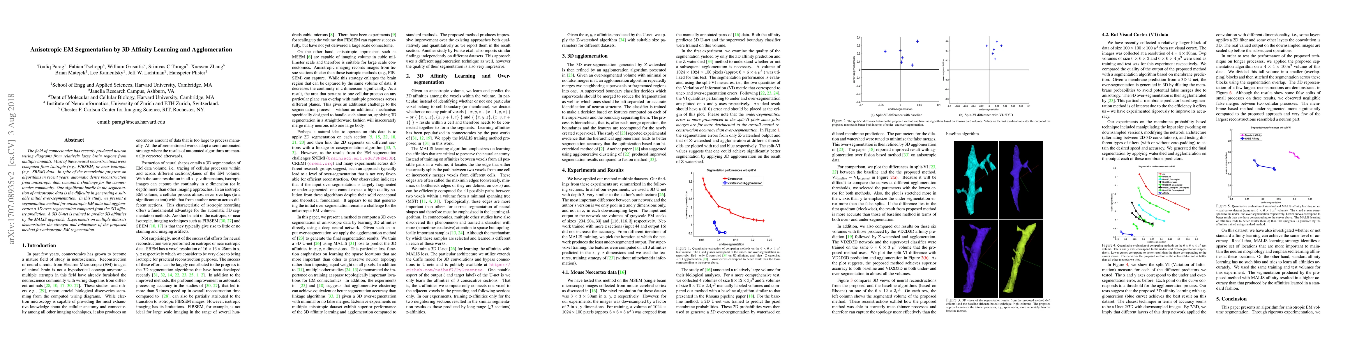 The field of connectomics has recently produced neuron wiring diagrams from relatively large brain regions from multiple animals. Most of these neural reconstructions were computed from isotropic (e.g., FIBSEM) or near isotropic (e.g., SBEM) data. In spite of the remarkable progress on algorithms in recent years, automatic dense reconstruction from anisotropic data remains a challenge for the connectomics community. One significant hurdle in the segmentation of anisotropic data is the difficulty in generating a suitable initial over-segmentation. In this study, we present a segmentation method for anisotropic EM data that agglomerates a 3D over-segmentation computed from the 3D affinity prediction. A 3D U-net is trained to predict 3D affinities by the MALIS approach. Experiments on multiple datasets demonstrates the strength and robustness of the proposed method for anisotropic EM segmentation.