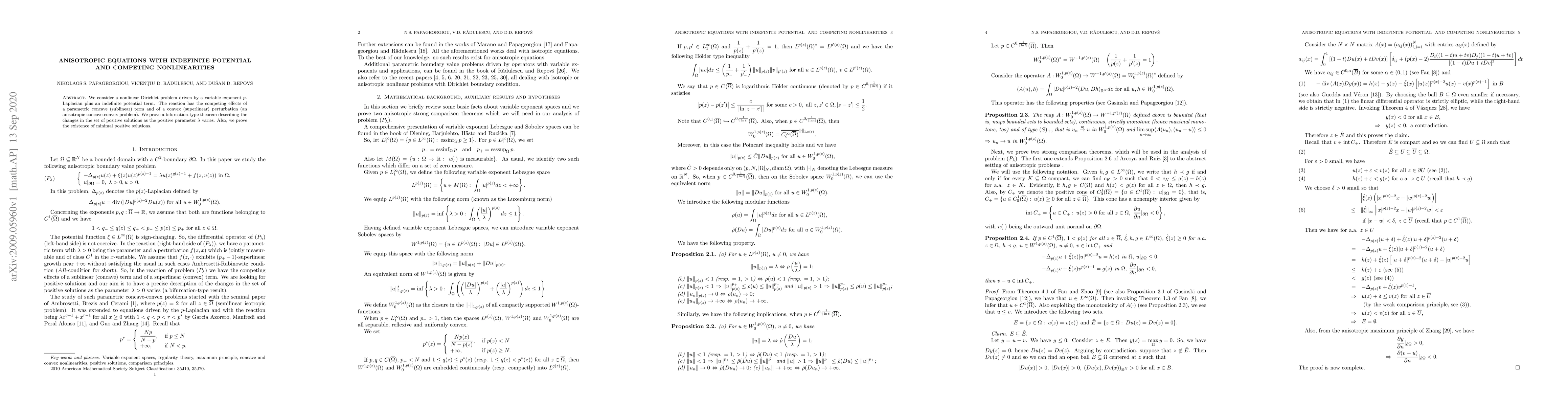 This paper studies a nonlinear Dirichlet problem involving a variable exponent $p$-Laplacian with an indefinite potential and competing nonlinearities. It proves a bifurcation theorem and the existence of minimal positive solutions as a parameter varies.