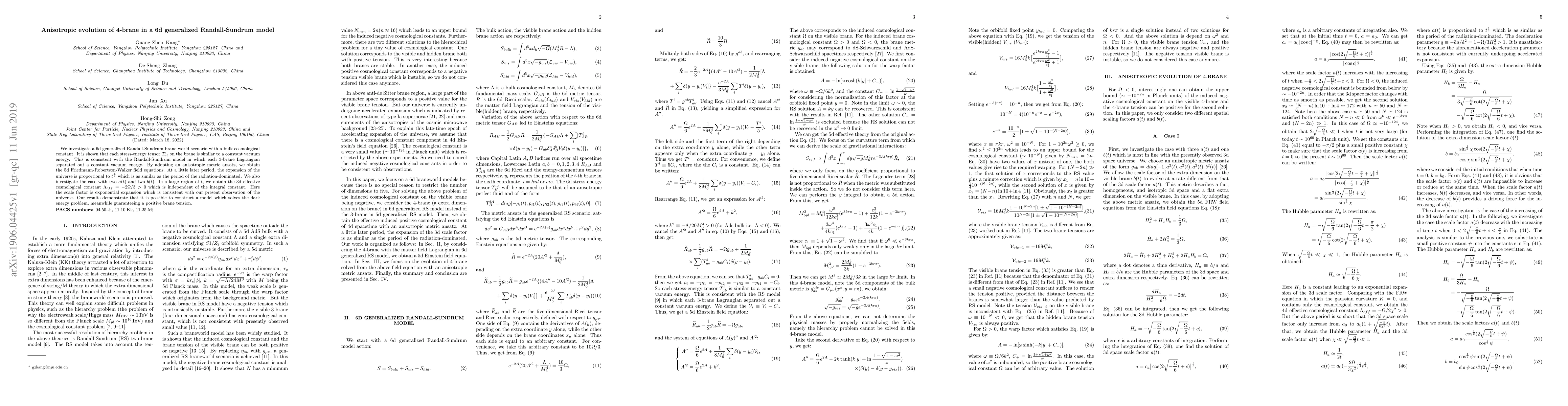 This paper explores a 6D generalized Randall-Sundrum model with a bulk cosmological constant, showing that brane stress-energy tensors resemble constant vacuum energy. Using an anisotropic metric, the authors derive 5d Friedmann-Robertson-Walker equations, revealing an expansion proportional to $t^{\frac{1}{2}}$ akin to radiation-dominated periods, and propose a model that addresses dark energy while maintaining positive brane tension.