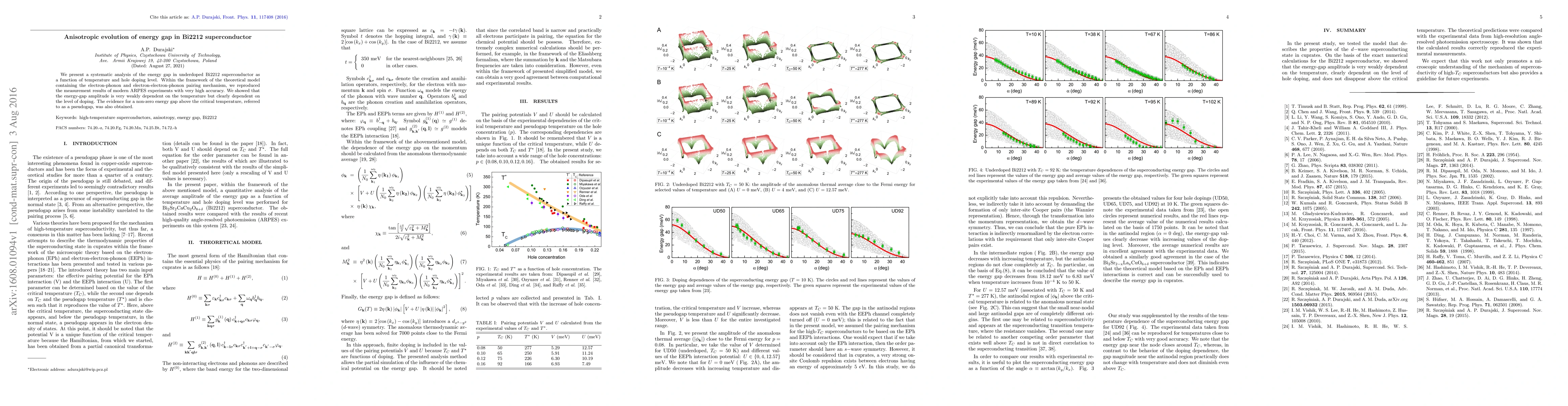 We present a systematic analysis of the energy gap in underdoped Bi2212 superconductor as a function of temperature and hole doping level. Within the framework of the theoretical model containing the electron-phonon and electron-electron-phonon pairing mechanism, we reproduced the measurement results of modern ARPES experiments with very high accuracy. We showed that the energy-gap amplitude is very weakly dependent on the temperature but clearly dependent on the level of doping. The evidence for a non-zero energy gap above the critical temperature, referred to as a pseudogap, was also obtained.