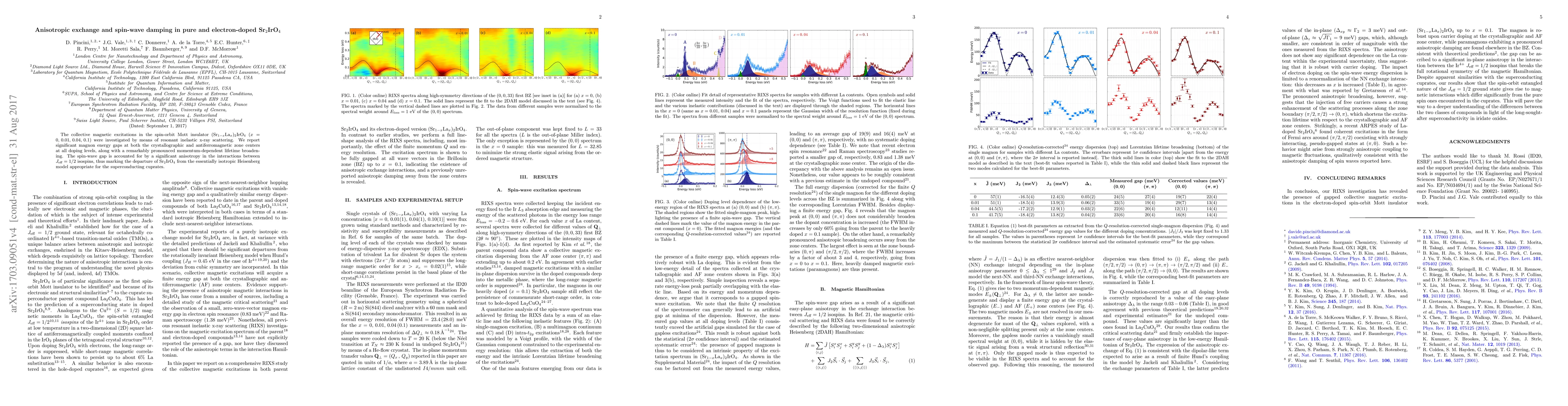 This study investigates collective magnetic excitations in doped Sr$_2$IrO$_4$ using resonant inelastic x-ray scattering, revealing anisotropic exchange interactions and significant spin-wave damping, highlighting Sr$_2$IrO$_4$'s deviation from the isotropic Heisenberg model.