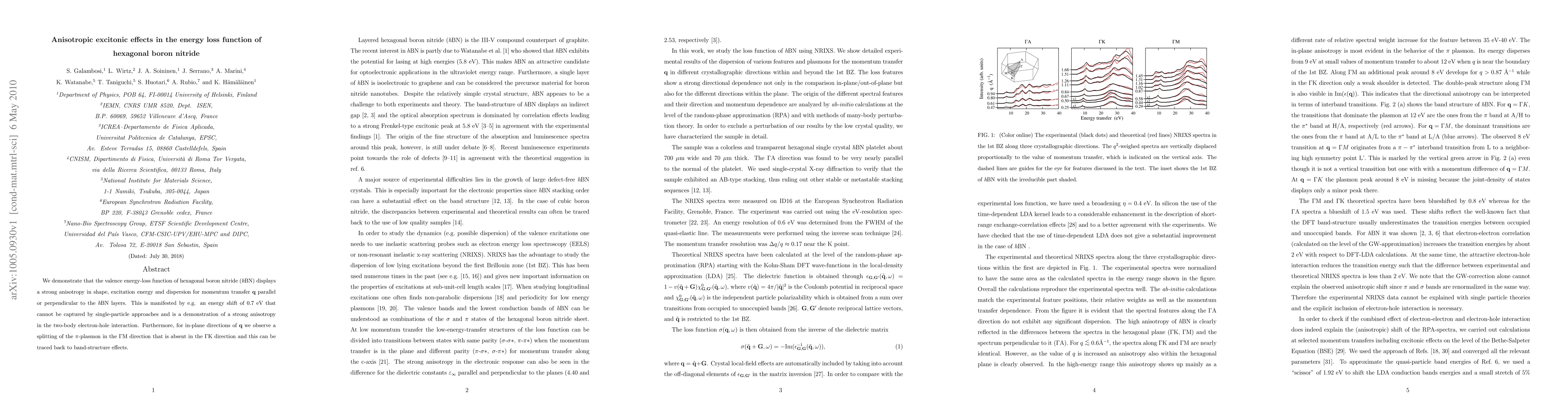 Summary: The research shows strong anisotropic excitonic effects in the valence energy-loss function of hexagonal boron nitride (hBN), with notable energy shifts and anisotropy in electron-hole interactions, and in-plane momentum transfer revealing a unique splitting of the -plasmon related to band-structure effects.