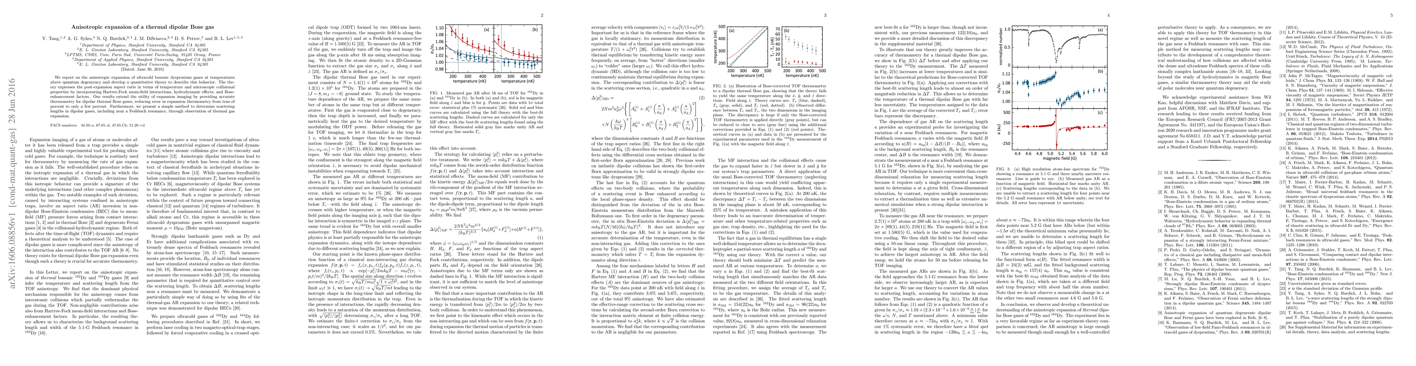 This paper investigates the anisotropic expansion of ultracold dysprosium dipolar Bose gases and develops a quantitative theory to describe it, incorporating mean-field interactions and hydrodynamic effects. The theory improves thermometry accuracy for dipolar gases and provides a method for determining scattering lengths via thermal expansion observation.