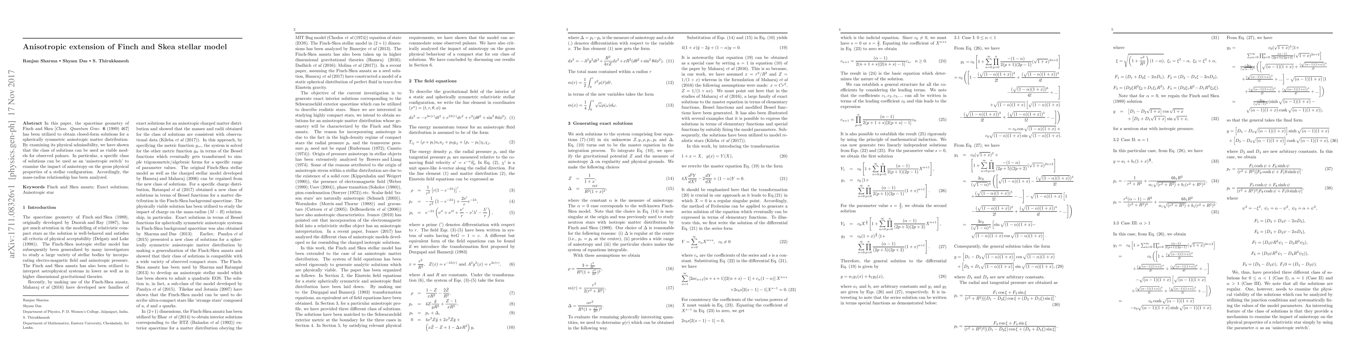 This paper extends the Finch and Skea stellar model to spherically symmetric anisotropic matter, deriving closed-form solutions and demonstrating their viability for modeling observed pulsars. It also investigates the mass-radius relationship under the influence of anisotropy.