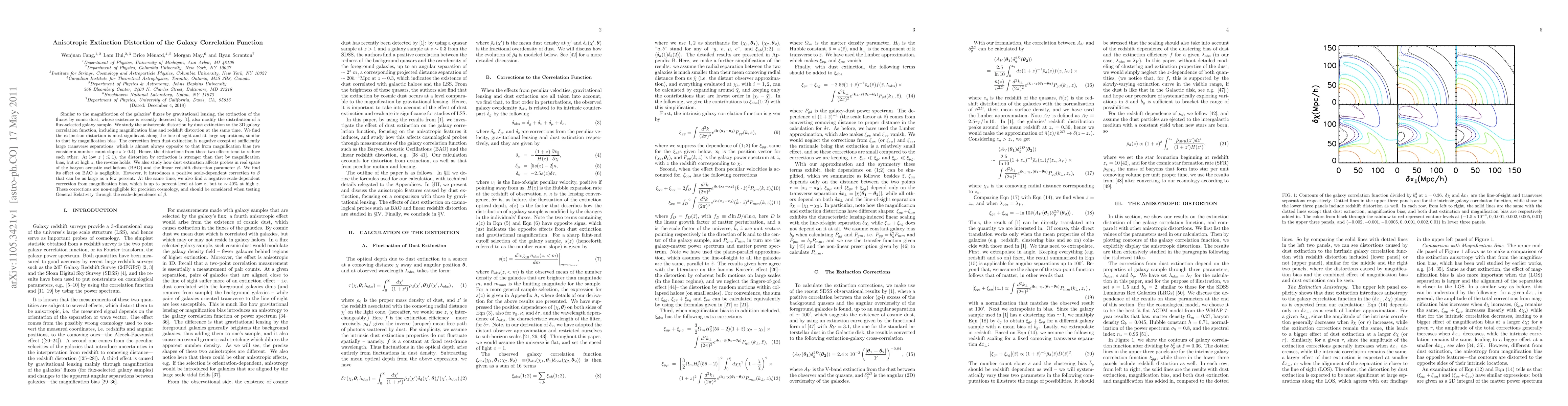 Similar to the magnification of the galaxies' fluxes by gravitational lensing, the extinction of the fluxes by comic dust, whose existence is recently detected by Menard et al (2009), also modify the distribution of a flux-selected galaxy sample. We study the anisotropic distortion by dust extinction to the 3D galaxy correlation function, including magnification bias and redshift distortion at the same time. We find the extinction distortion is most significant along the line of sight and at large separations, similar to that by magnification bias. The correction from dust extinction is negative except at sufficiently large transverse separations, which is almost always opposite to that from magnification bias (we consider a number count slope s > 0.4). Hence, the distortions from these two effects tend to reduce each other. At low z (~<1), the distortion by extinction is stronger than that by magnification bias, but at high z, the reverse holds. We also study how dust extinction affects probes in real space of the baryon acoustic oscillations (BAO) and the linear redshift distortion parameter beta. We find its effect on BAO is negligible. However, it introduces a positive scale-dependent correction to beta that can be as large as a few percent. At the same time, we also find a negative scale-dependent correction from magnification bias, which is up to percent level at low z, but to ~40% at high z. These corrections are non-negligible for precision cosmology, and should be considered when testing General Relativity through the scale-dependence of beta.