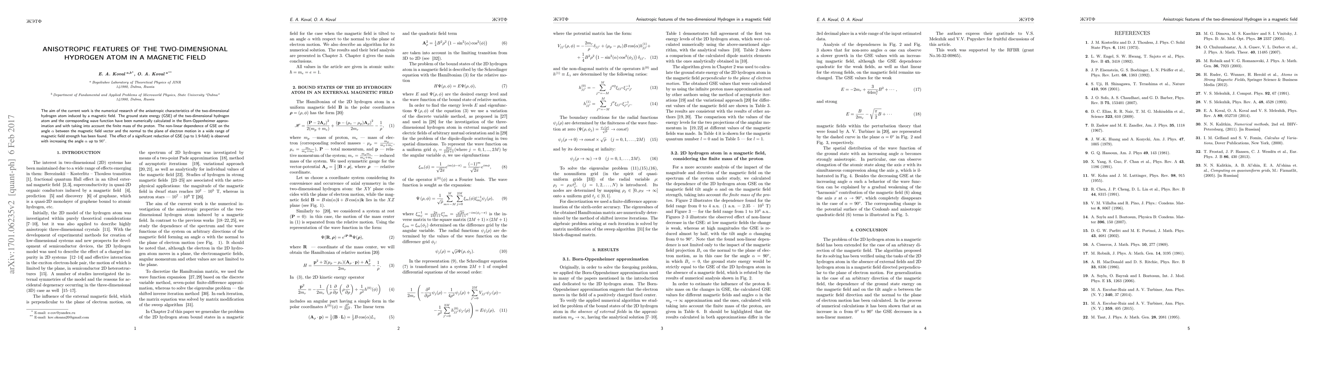 The aim of the current work is the numerical research of the anisotropic characteristics of the two-dimensional hydrogen atom induced by a magnetic field. The ground state energy (GSE) of the two-dimensional hydrogen atom and the corresponding wave function have been numerically calculated in the Born-Oppenheimer approximation and with taking into account the finite mass of the proton. The non-linear dependence of GSE on the angle {\alpha} between the magnetic field vector and the normal to the plane of electron motion in a wide range of magnetic field strength has been found. The effect of a significant reduction of GSE (up to 1.9-fold) is observed with increasing the angle {\alpha} up to 90 degrees.