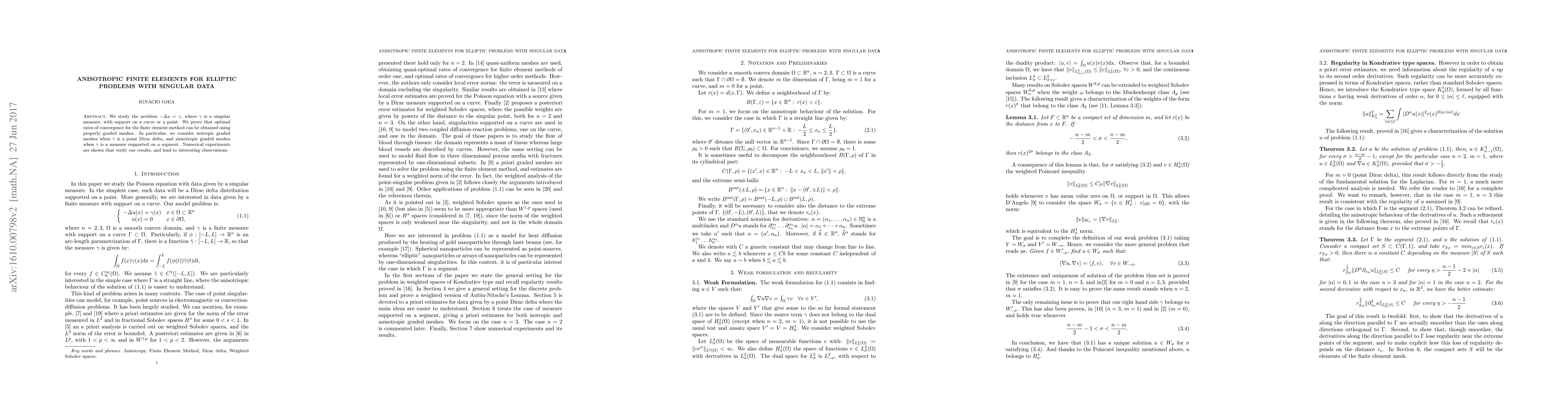 We study the problem $-\Delta u = \gamma$, where $\gamma$ is a singular measure, with support on a curve or a point. We prove that optimal rates of convergence for the finite element method can be obtained using properly graded meshes. In particular, we consider isotropic graded meshes when $\gamma$ is a point Dirac delta, and anisotropic graded meshes when $\gamma$ is a measure supported on a segment. Numerical experiments are shown that verify our results, and lead to interesting observations.