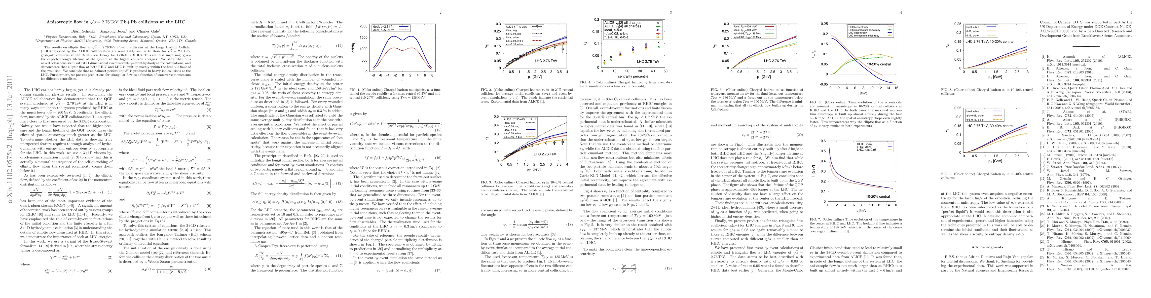 The results on elliptic flow in sqrt(s)=2.76 TeV Pb+Pb collisions at the Large Hadron Collider (LHC) reported by the ALICE collaboration are remarkably similar to those for sqrt(s)=200 GeV gold-gold collisions at the Relativistic Heavy Ion Collider (RHIC). This result is surprising, given the expected longer lifetime of the system at the higher collision energies. We show that it is nevertheless consistent with 3+1 dimensional viscous event-by-event hydrodynamic calculations, and demonstrate that elliptic flow at both RHIC and LHC is built up mostly within the first 5 fm/c of the evolution. We conclude that an "almost perfect liquid" is produced in heavy-ion collisions at the LHC. Furthermore, we present predictions for triangular flow as a function of transverse momentum for different centralities.