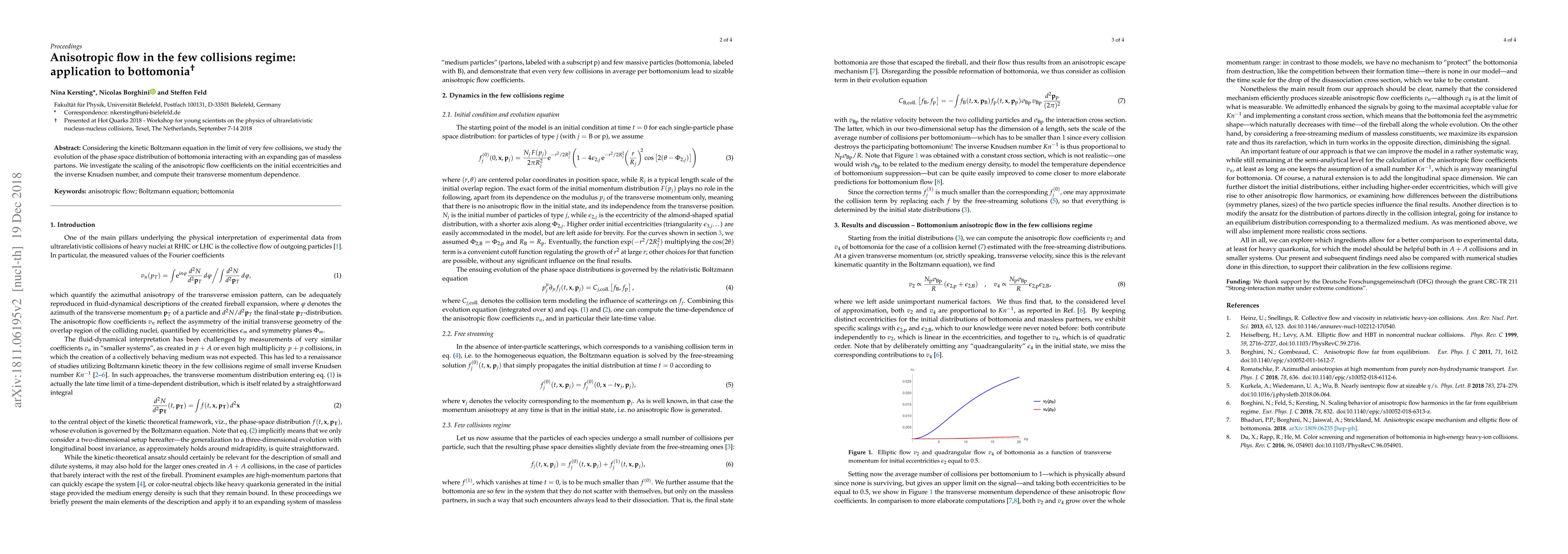 Researchers study how an expanding gas of massless particles affects bottomonia in a few collisions regime, focusing on the behavior of anisotropic flow coefficients and their relation to initial conditions and particle momentum.