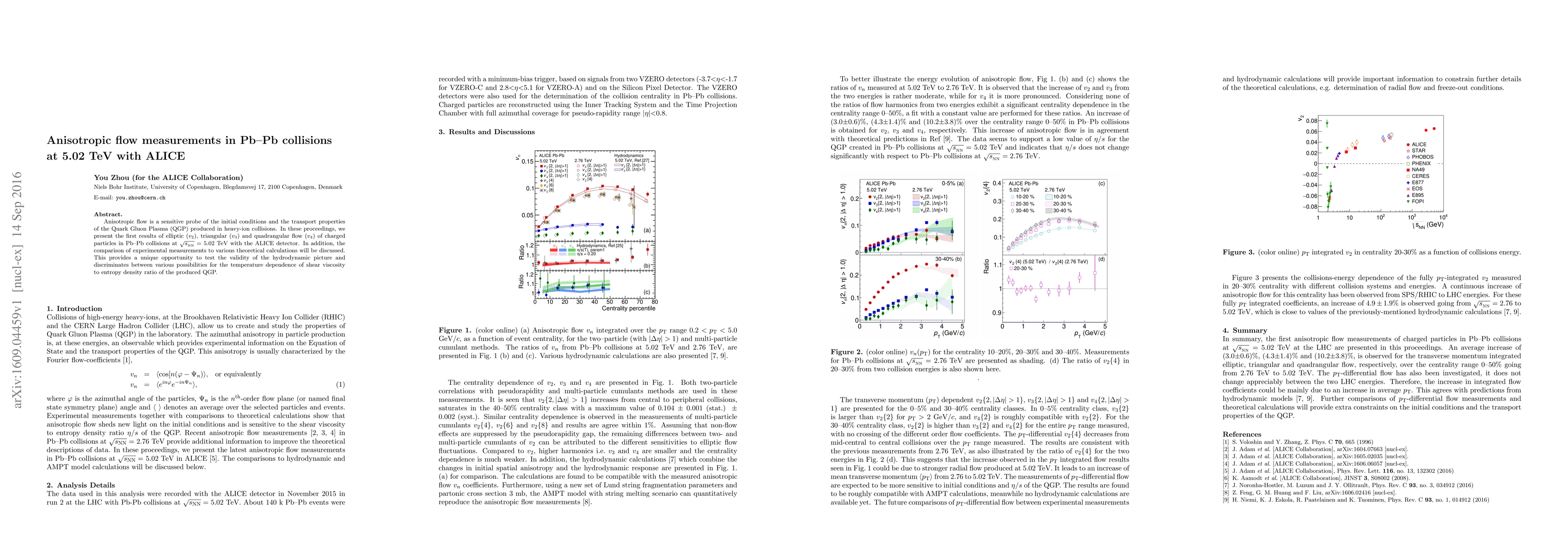 This paper reports on anisotropic flow measurements in Pb-Pb collisions at 5.02 TeV using the ALICE detector, focusing on elliptic, triangular, and quadrangular flow coefficients. The study compares experimental results to theoretical models to assess the properties of the Quark Gluon Plasma and its viscosity.