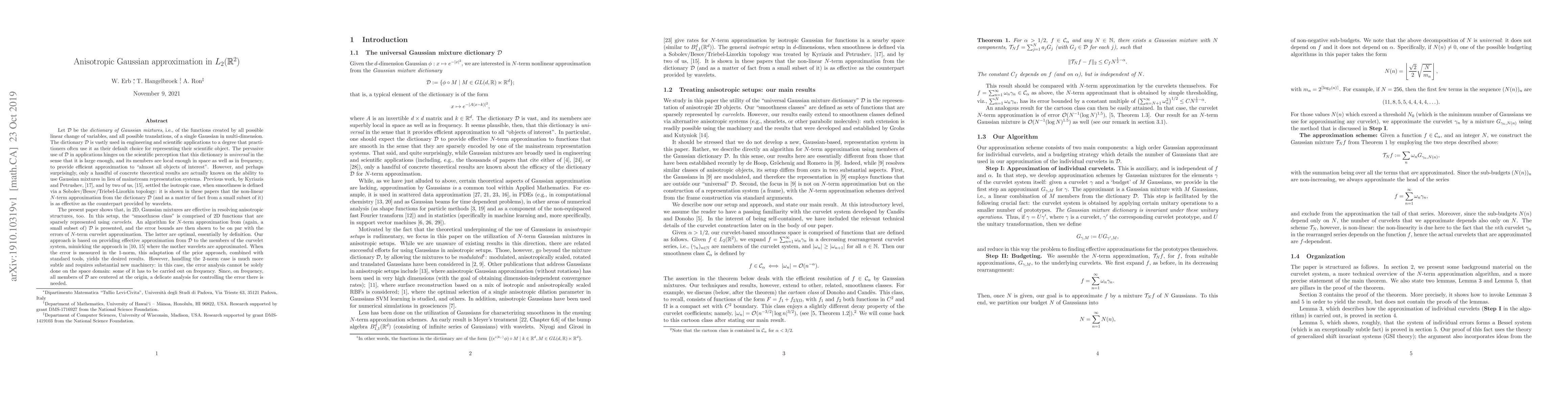 Researchers show that Gaussian mixtures can effectively approximate anisotropic structures in 2D space, with error bounds comparable to those of curvelet approximation, offering a new approach for efficient representation.