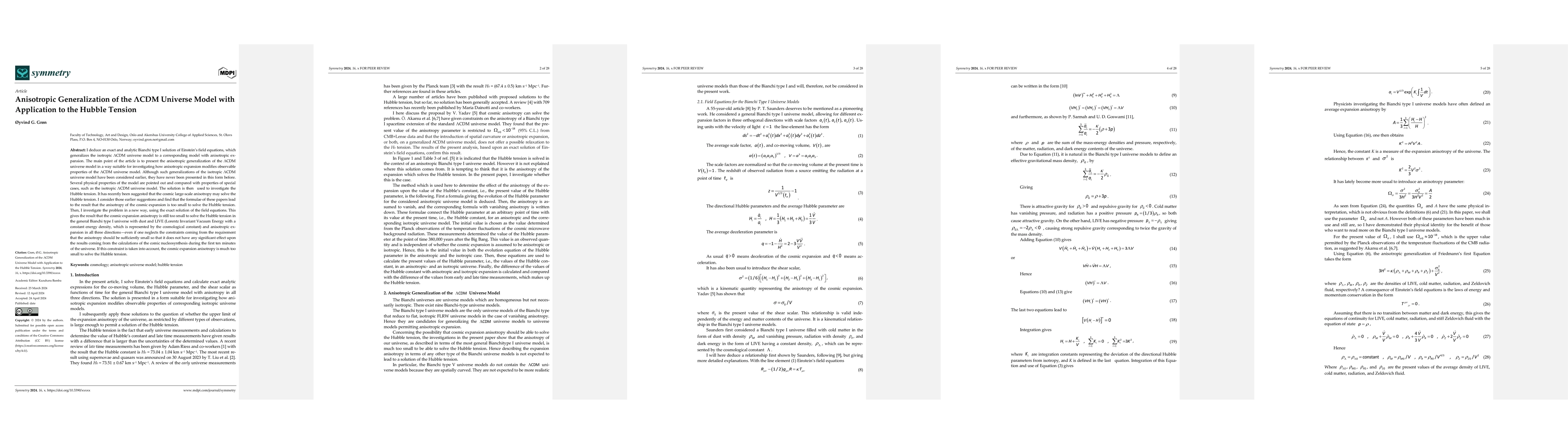 The paper presents an exact analytic Bianchi type I solution to Einstein's field equations, generalizing the isotropic ΛCDM model to account for anisotropic expansion. The study concludes that cosmic expansion anisotropy, even in a generalized model, remains insufficient to resolve the Hubble tension, especially when accounting for nucleosynthesis constraints.