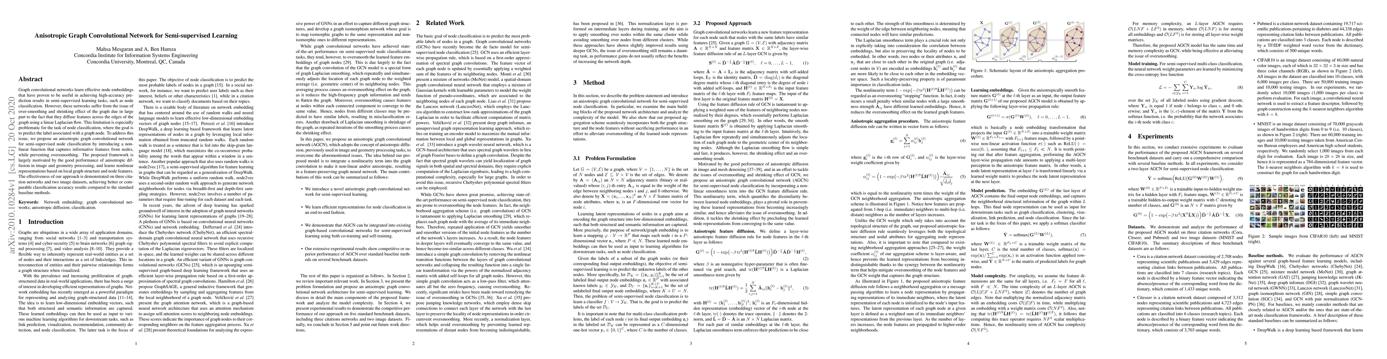 This paper proposes an anisotropic graph convolutional network to tackle over-smoothing in semi-supervised node classification, introducing a nonlinear function to capture informative features and prevent over-smoothing, achieving better or comparable classification accuracy on various datasets.