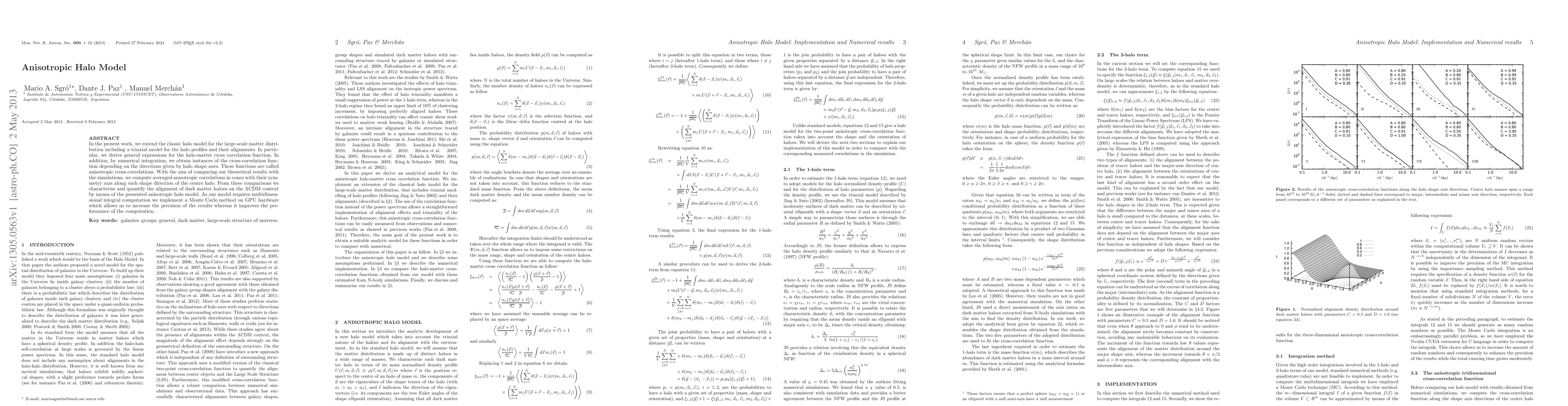 Researchers develop an anisotropic halo model to quantify dark matter halo alignment in large-scale galaxy distributions, using a Monte Carlo method on GPU hardware for improved precision.